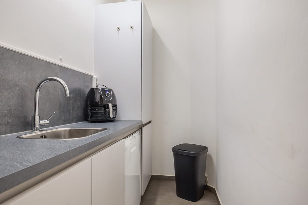 Keuken (ca. 2.35 x 1.41m) met een dakraam en een wandopstelling voorzien van diverse kastruimte, een spoelbak, vaatwasser en close-in boiler.