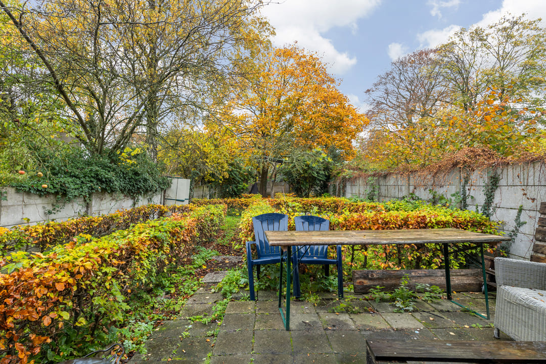 De waanzinnige achtertuin (ca. 24.50 x 7.65m) is ondanks de centrumlocatie fluisterstil en biedt altijd een plekje in de zon. De tuin is voorzien van een terras, borders met een gevarieerde beplanting en een volwassen bomenstand.