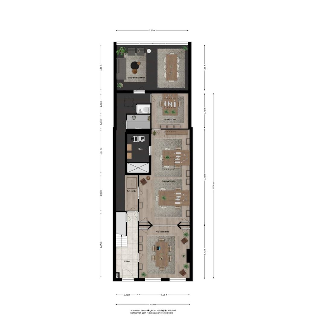 Statige hal (ca. 6.47 x 2.20m) met toegang tot het kantoor op de begane grond. Deze hal is niet in het VVO meegerekend aangezien deze tevens toegang geeft tot de bovenwoning.