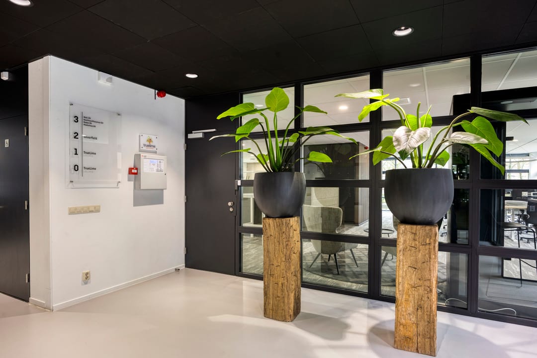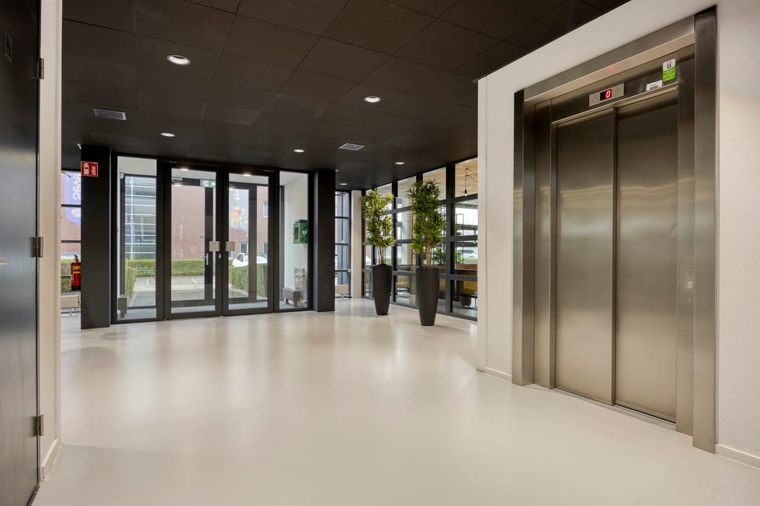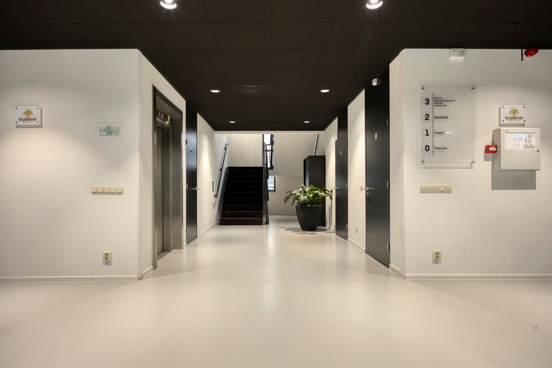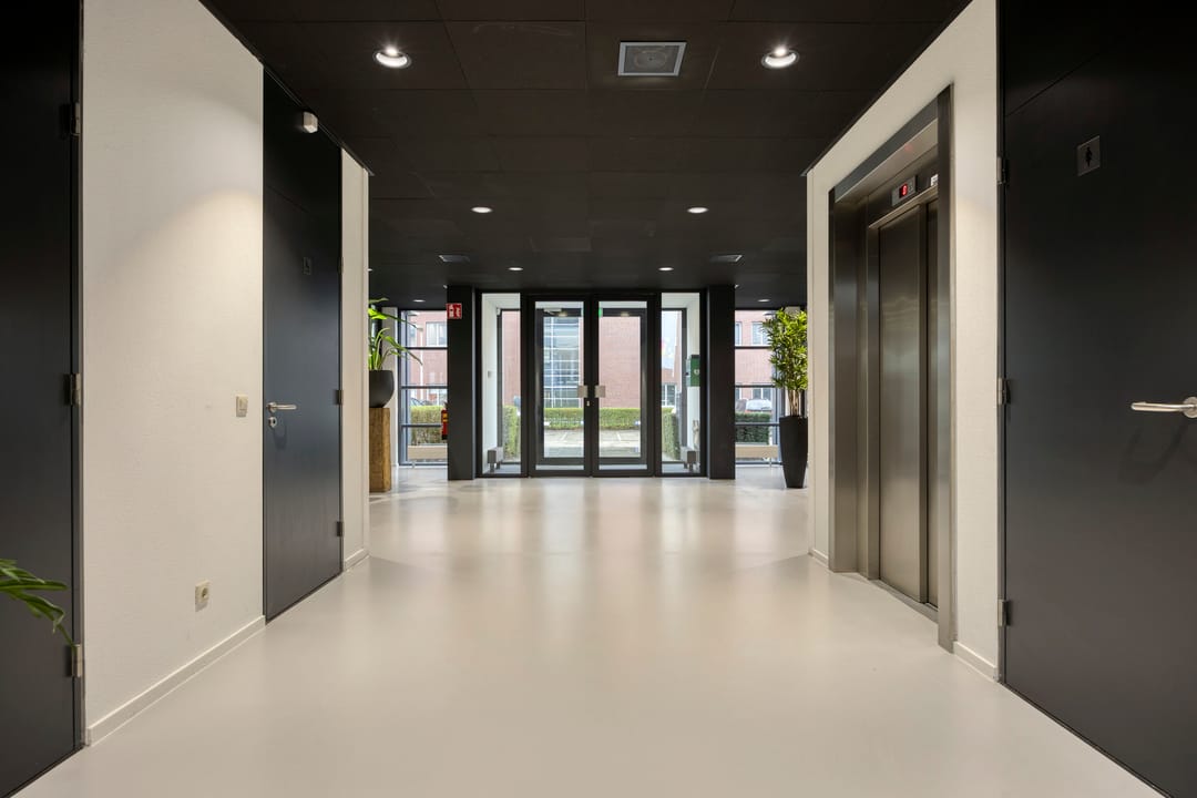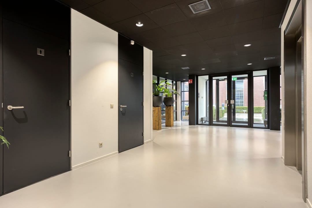 Centrale entree met toegang tot de kantoorruimtes op de begane grond en de opgang naar de verdiepingen. Tevens zijn aan de centrale ruimte de toiletgroepen gesitueerd. De kantoorruimte heeft een open kantoorstructuur met een centraal gelegen spreekkamer.