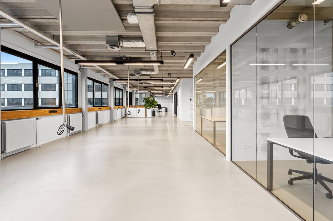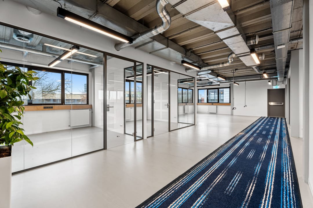 Op de begane grond is een zeer representatieve ontvangst gesitueerd met een uitgebreid bedrijfsrestaurant en dito gymfaciliteit. Het concept binnen het gebouw is zo ingericht dat huurder de werkplekken op het eigen kantoorveld heeft en in de gemeenschappelijke ruimtes gebruik kan maken van de pantry, toiletten en verschillende vergaderruimtes. De voor verhuur beschikbaar komende kantoorruimte ligt op de eerste verdieping en heeft een oppervlakte van circa 623 m² vvo (inclusief toebedeling algemene ruimtes). De, op de begane grond gelegen, showroom (intern verbonden met de kantoorruimte) kan tevens toegevoegd worden aan het gehuurde. De showroom betreft 1.155 m² vvo.