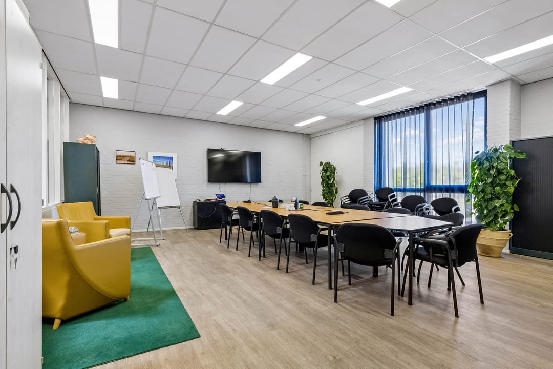 • 1e Verdieping: circa 278 m² kantoorruimte, verdeeld over een linker- en rechtervleugel met diverse (5) kantoorkamers en een royale vergaderruimte (inclusief toebedeling algemene ruimte).