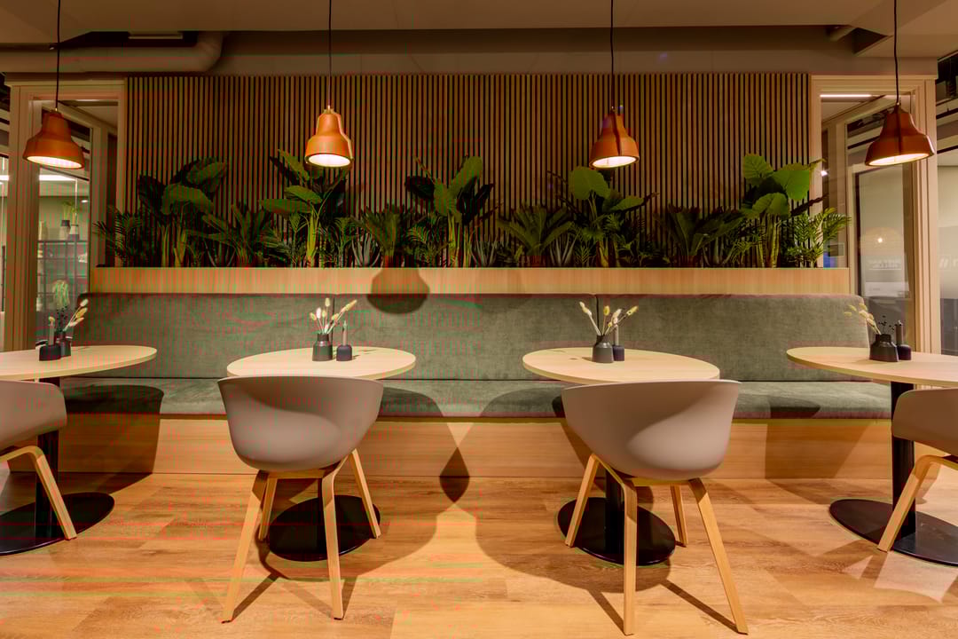 Nature: haalt de buitenwereld naar binnen. Organische materialen, weelderige plantenwanden, natuursteen en volop daglicht zorgen voor een open, kalme sfeer. Laat je creativiteit bloeien te midden van groene oases en duurzame materialen.