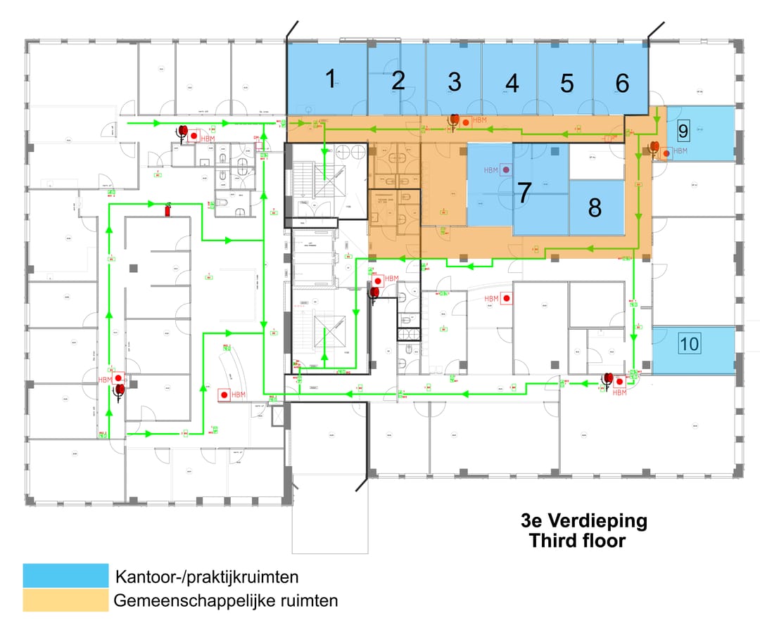 - kantoor-/praktijkruimten van circa 318 m², gesitueerd op de 3e verdieping.