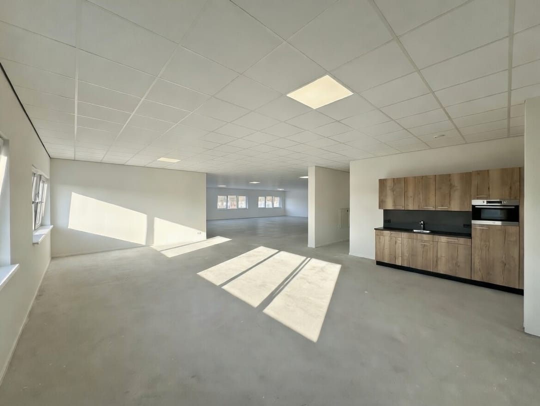 De kantoorruimte is gelegen op de verdieping met eigen entree en is nog volledig naar eigen inzicht in te delen in overleg met verhuurder. recent zijn de wanden, vensterbanken, syteemplafond, keuken en toiletten gerealiseerd. Deze zijn allemaal nieuw en in perfecte staat.