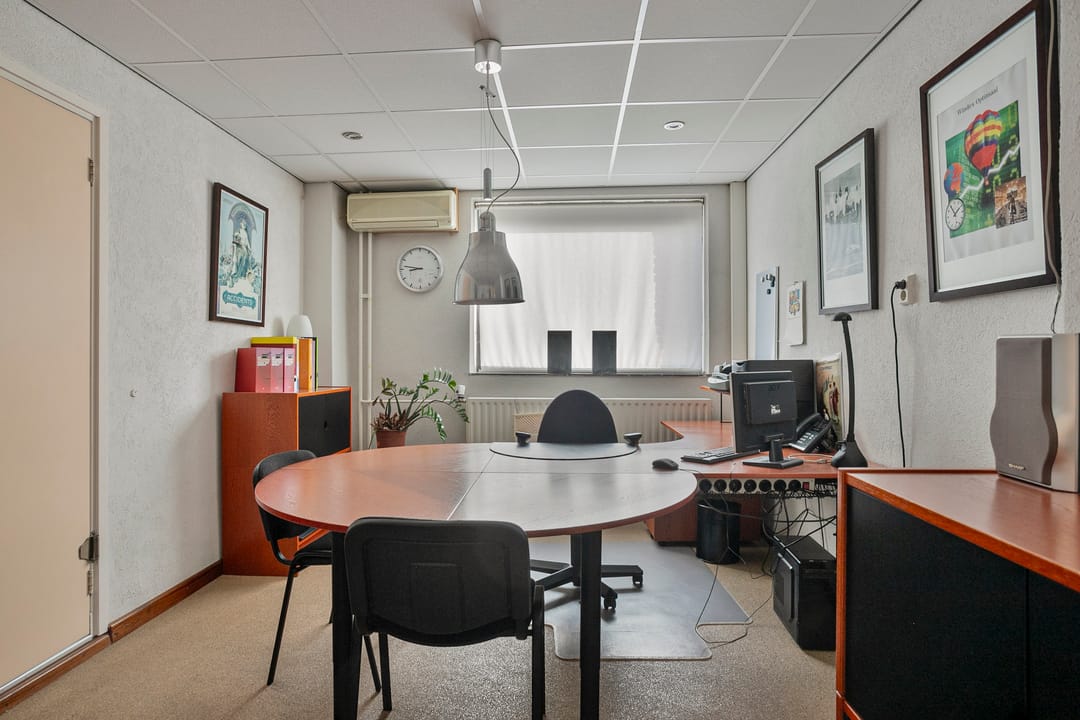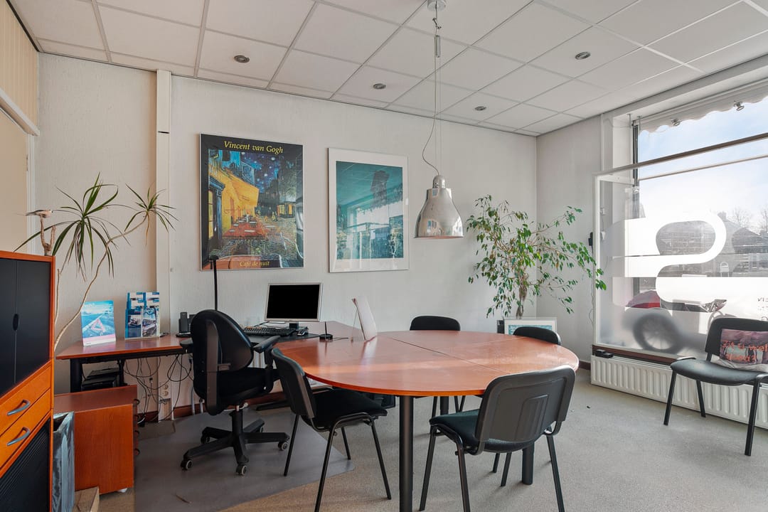 De kantoorruimte meet ca. 108 m² VVO op de begane grond en ca. 23 m² VVO in de kelder. De begane grond is verdeeld in ontvangst- en werkplekken voorzien van prima vloer-, wand,- en plafondafwerking inclusief verlichting. Aan de achterzijde zijn een keukentje en toilet aanwezig. In de kelder is een cv-installatie voor het kantoor aanwezig.