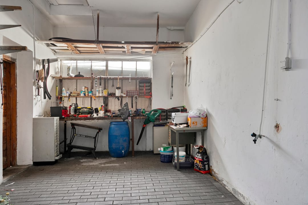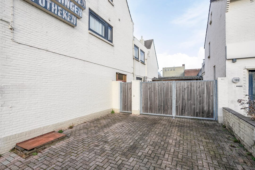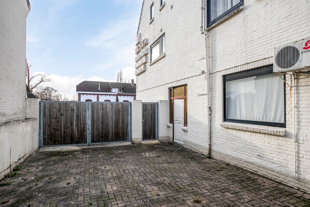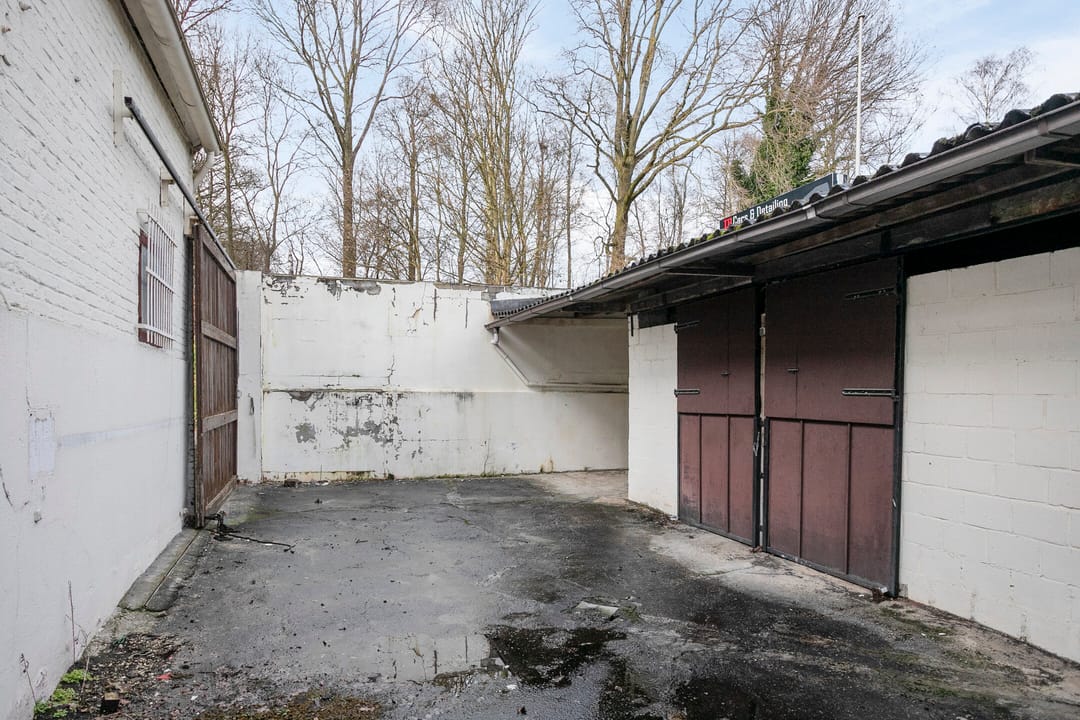 Via het kantoor is er toegang tot de garage van 32 m² VVO die weer toegang geeft tot de binnenplaats. Beide zijn tevens vanaf de openbare weg goed te bereiken. De binnenplaats was voorheen de tuin van de woning maar is inmiddels geheel verhard, deels voorzien van overkappingen en bevat twee af te sluiten ruimtes.
