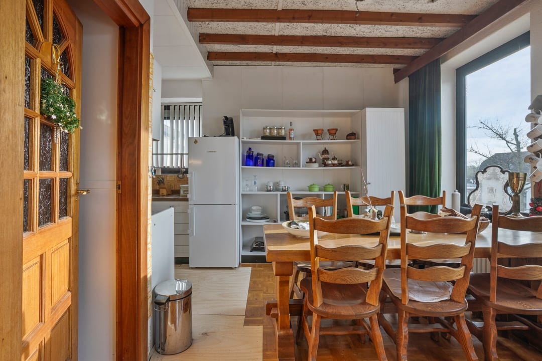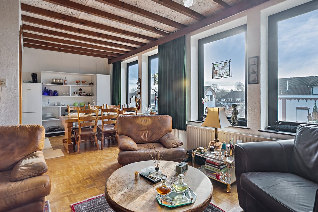 De bovenwoning meet ca. 186 m² VVO en is ruim van opzet, verdeeld over twee verdiepingen en de bergzolder. De woning beschikt op de eerste verdieping over woonkamer, keuken en multifunctionele ruimte. Er is tevens een balkon aanwezig, bereikbaar vanuit de woonkamer. Op de overloop is een separaat toilet aanwezig. Op de tweede verdieping zijn twee slaapkamers (17 m²/16 m²) en de badkamer (10 m²) gesitueerd. In een aparte bergruimte bevindt zich de cv-installatie van de woning. Boven de slaapkamers en de badkamer is de bergzolder gelegen die door de hoogte mogelijk verbouwd kan worden tot woonruimte.