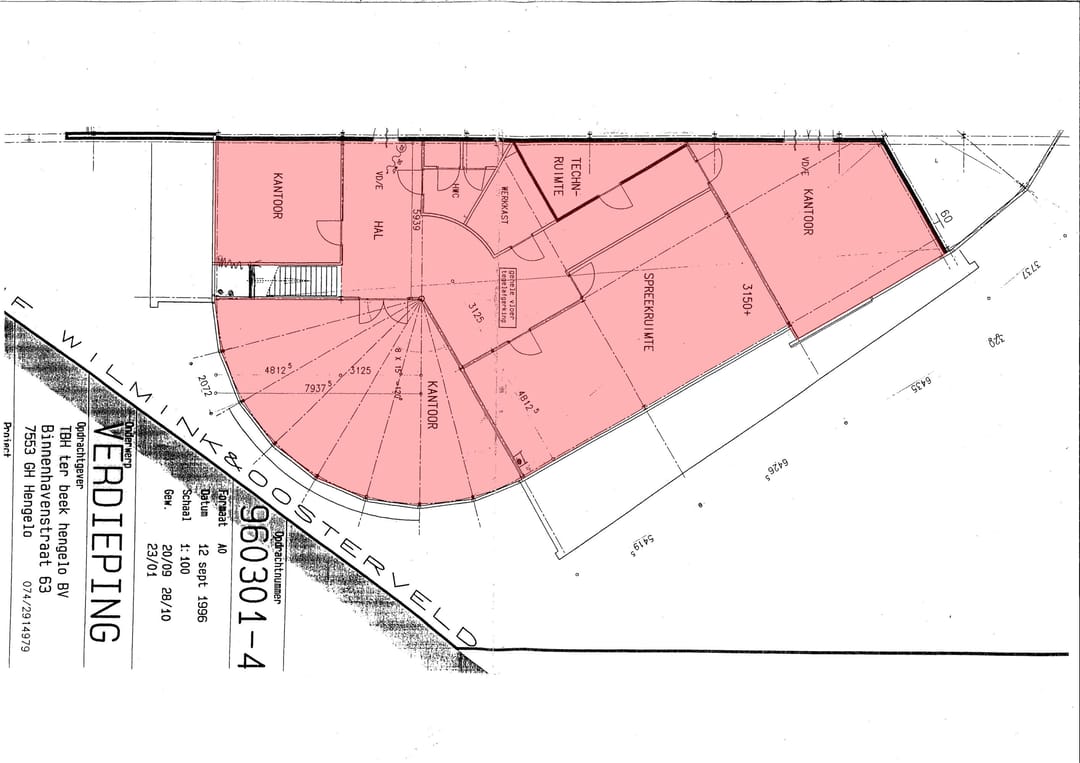 De oppervlakten zijn gemeten door verhurend makelaar uit een kopie bouwtekening. Het opgegeven metrage is derhalve indicatief; er kunnen geen rechten aan worden ontleend noch kan er sprake zijn van enige verrekening achteraf.