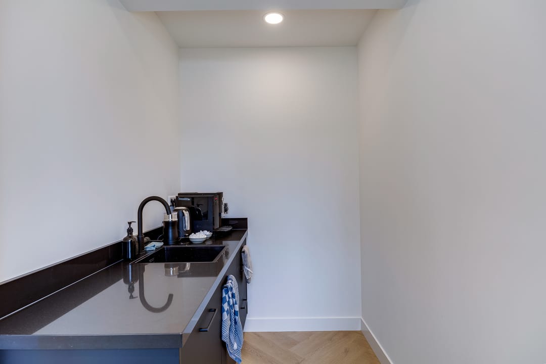 De kantoorvilla bestaat uit drie bouwlagen, verdeeld over ruimte kantoren met prachtig daglicht en een meetingroom, voor huurders van de villa te boeken - simpel en snel met een reserveringssysteem via de app - voor presentaties, vergaderingen en samenwerkingssessies. De ruimte is voorzien van groot scherm.