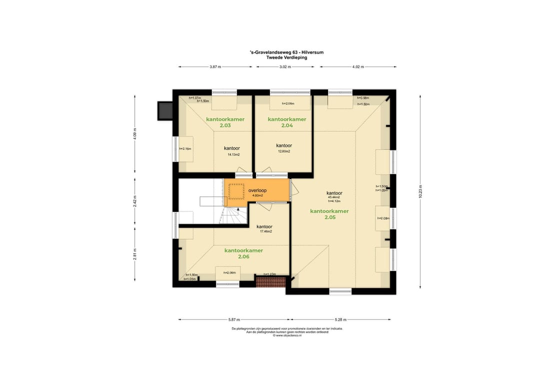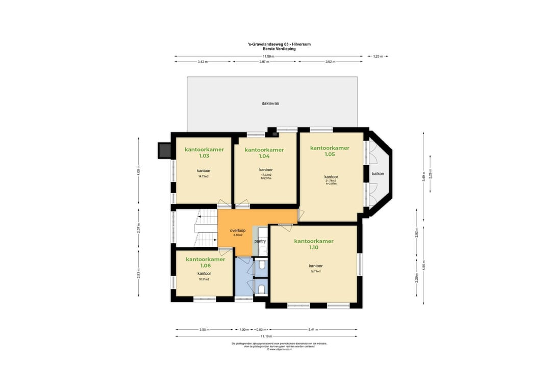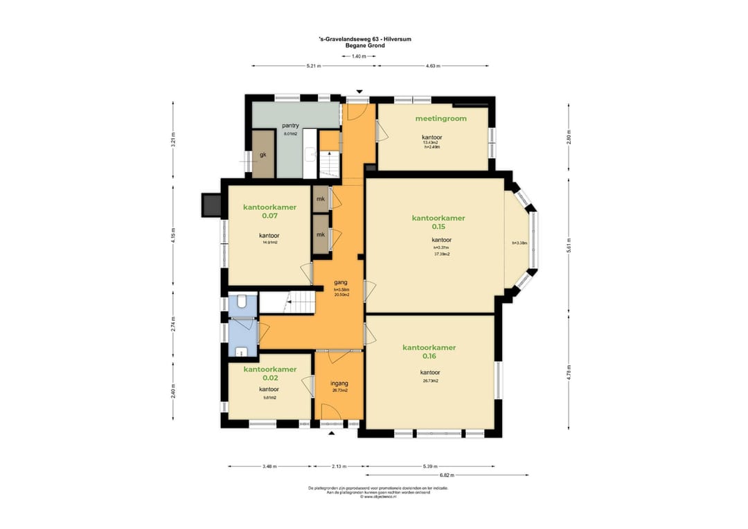 * De vloeroppervlaktes betreft de netto m2's van de kantoorkamers exclusief aandeel algemene ruimtes (gang, pantry, meetingroom etc.)