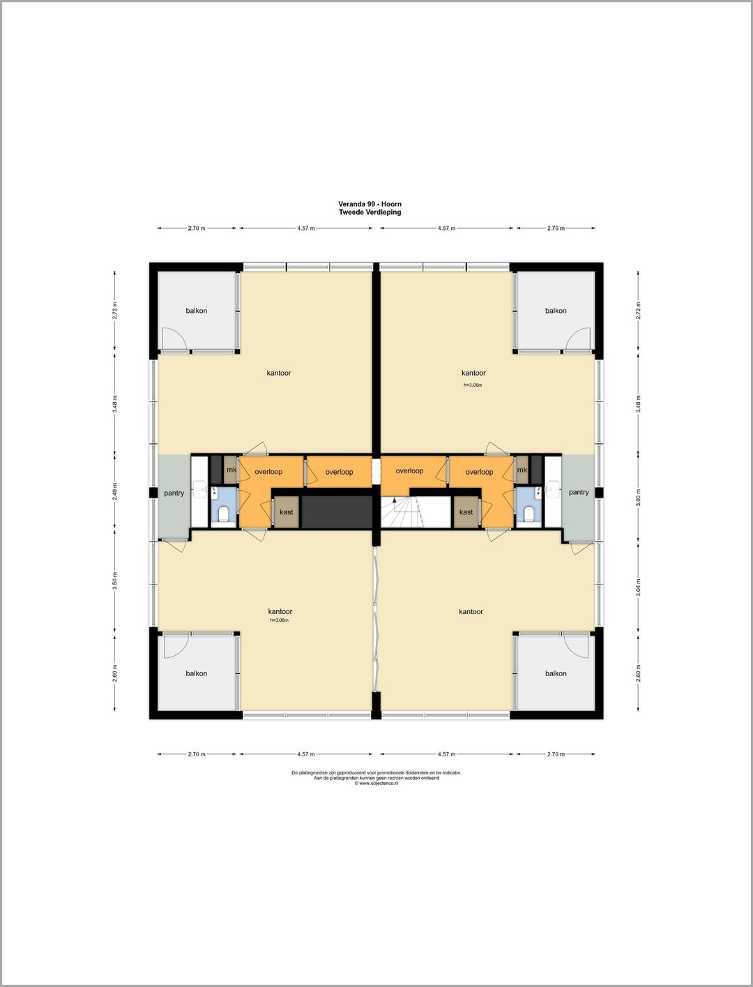 - circa 214m² bvo ter plaatse van de tweede verdieping, voorzien van een viertal met dakterrassen (tezamen groot circa 36 m²)