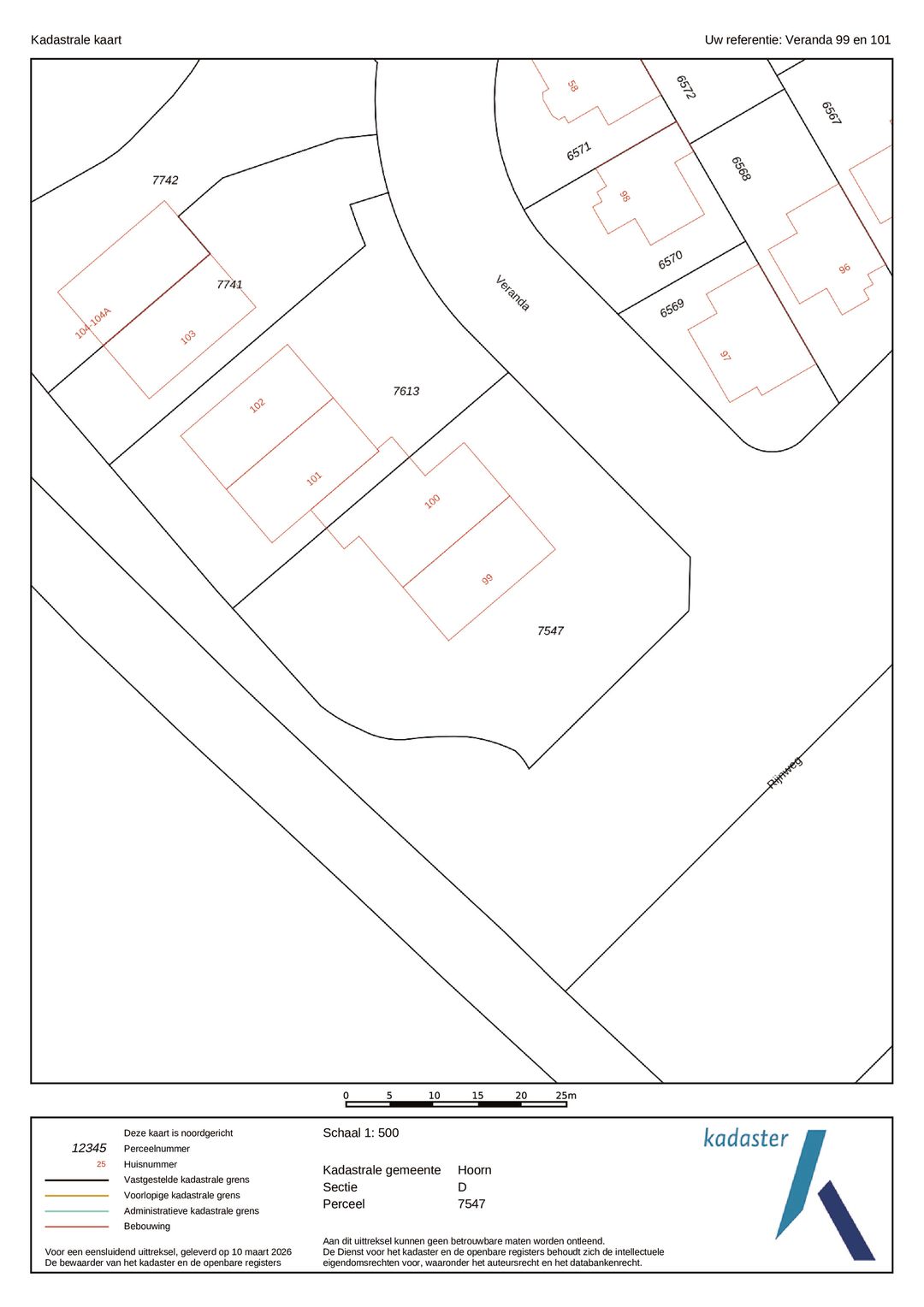 De geschakelde kantoorvilla (hoeklocatie) is op een prominente zichtlocatie langs de Provincialeweg gelegen, temidden van diverse gerenommeerde bedrijven, met aansluitend de woonwijk Kersenboogerd. Veranda 99 -100 is centraal in gemeente Hoorn gesitueerd, met een goede verbinding naar de recent verbrede Westfrisiaweg N302, met aansluitend Rijksweg A7 en de dijk Enkhuizen – Lelystad. Het stadscentrum, winkelcentrum Betje Wolfplein en het NS-station van Hoorn bevinden zich op fietsafstand.