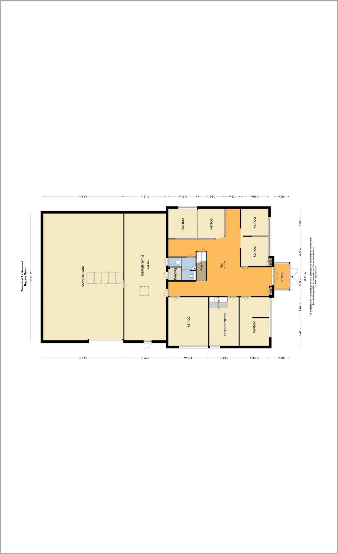 Via de ruime entree/ontvangsthal zijn de diverse kantoorruimtes, een vergaderruimte met pantry en een toilet met separaat fonteintje toegankelijk. Vanuit de hal heeft u tevens toegang tot de bedrijfsruimte, die is voorzien van een eigen toilet en douche.