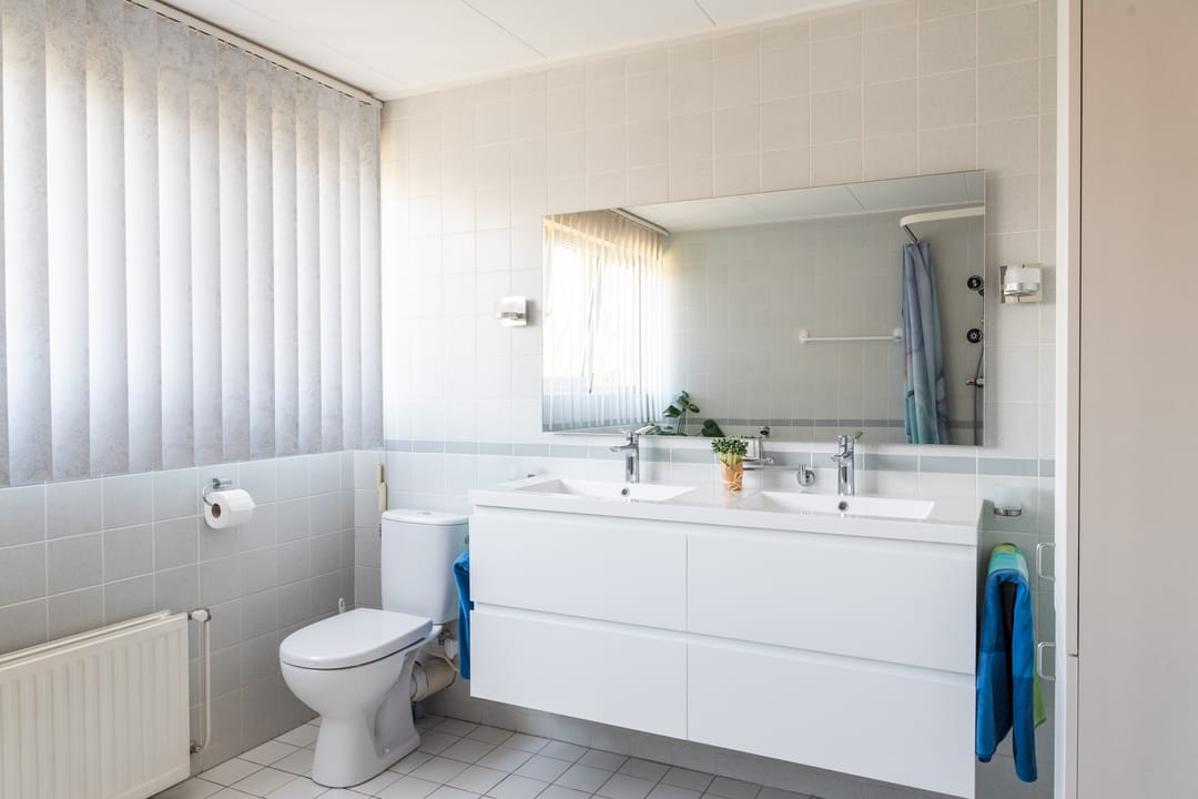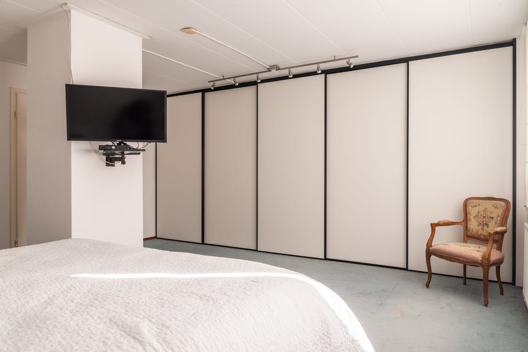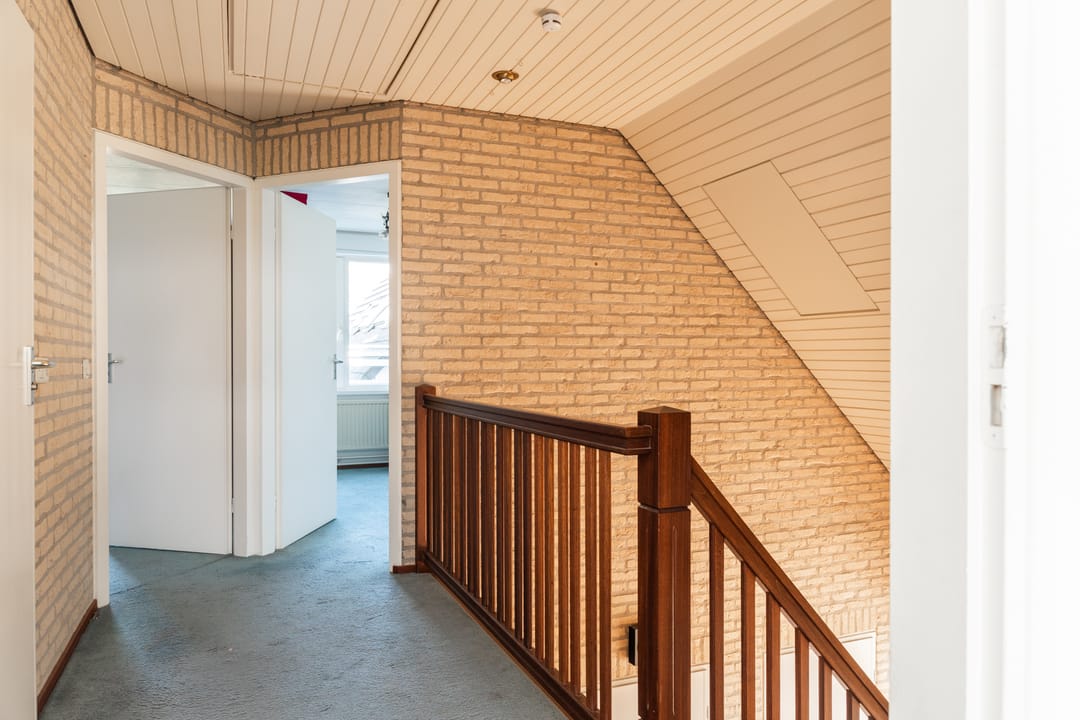 Op de eerste verdieping van het woonhuis vindt u een royale overloop met vide, een zeer ruime ouderslaapkamer aan de voorzijde met grote inbouwkasten, een lichte badkamer met ligbad, separate douche, dubbele wastafel en toilet, en twee fijne slaapkamers aan de achterzijde.