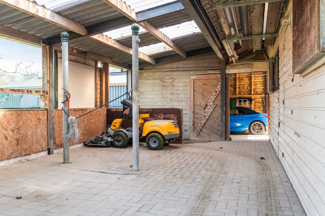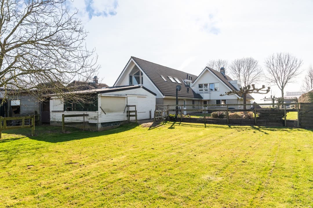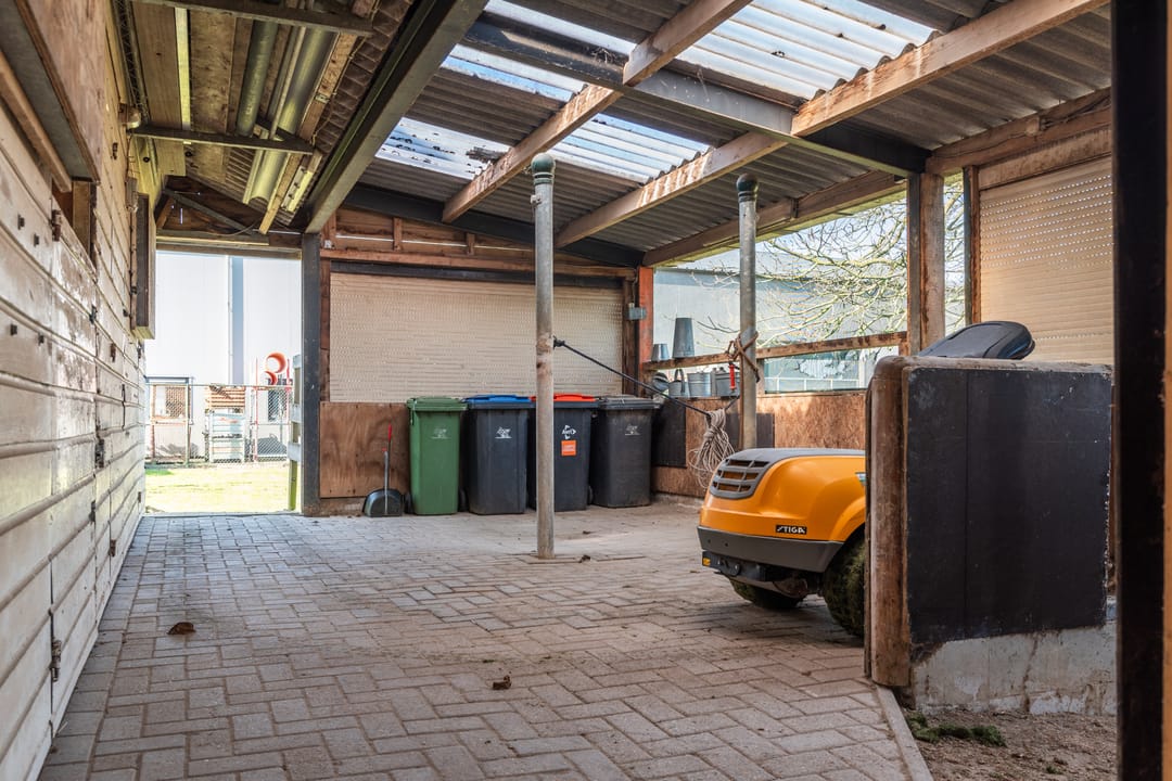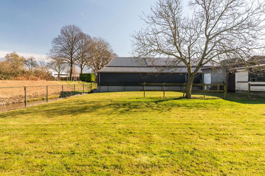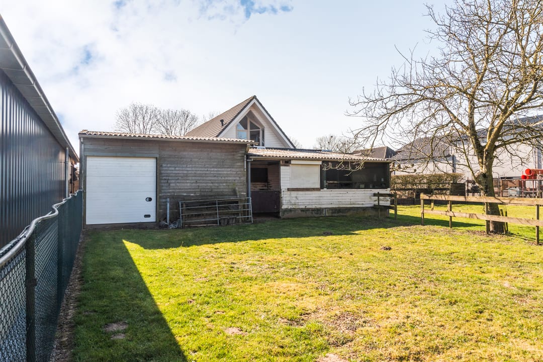 De aanwezige weide sluit direct aan op dit bijgebouw, waardoor het terrein bijzonder praktisch en functioneel is ingericht.