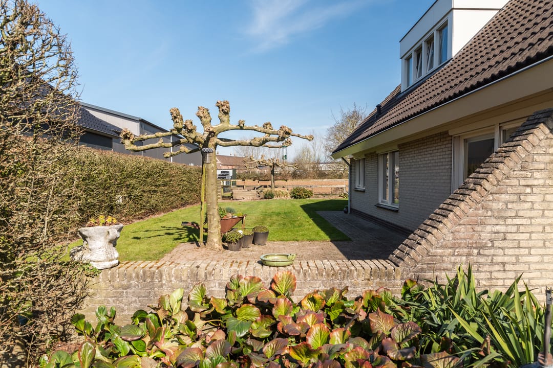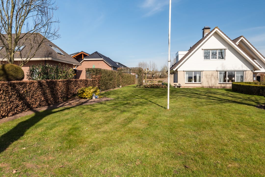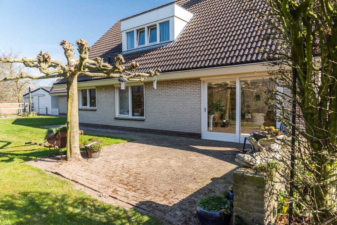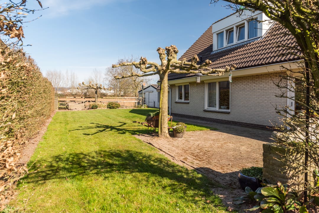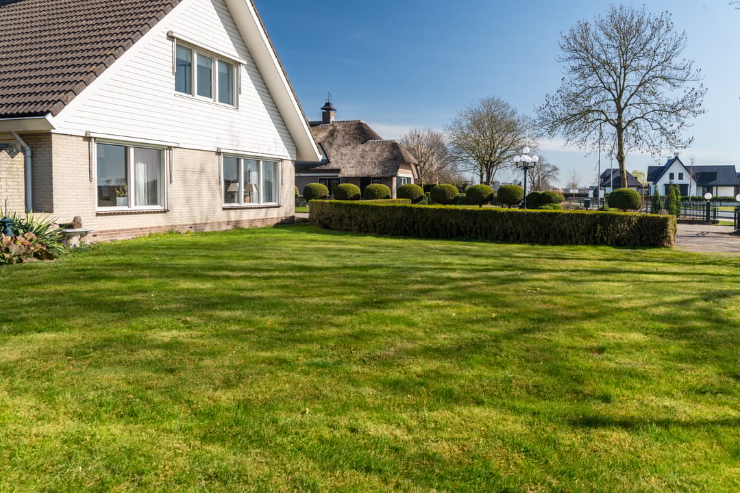 De aanwezige weide sluit direct aan op dit bijgebouw, waardoor het terrein bijzonder praktisch en functioneel is ingericht.