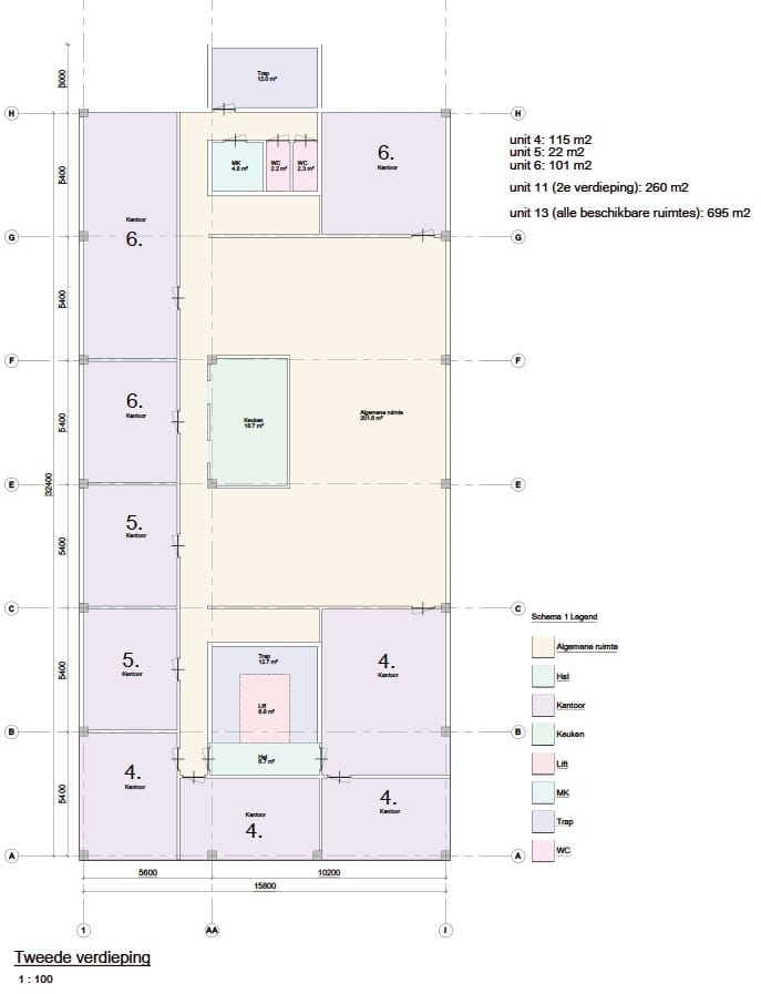 Unit 4 – 115 m² (2e verdieping) Ruime en representatieve unit, licht en modern ingericht.