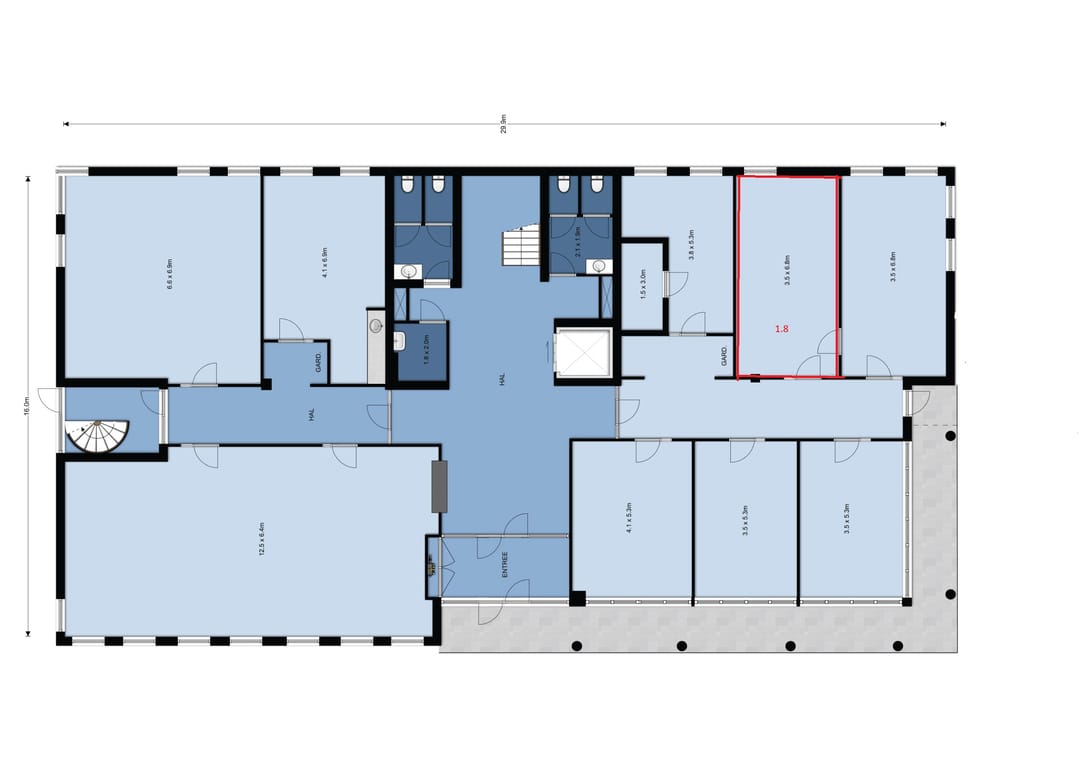 Op dit moment is beschikbaar unit 1.8 op de begane grond van ca. 25 m².