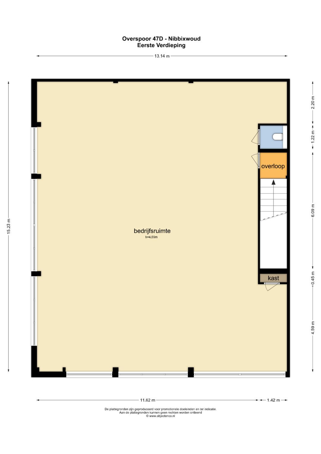 Deze ruimte is ideaal in te richten als dansstudio, creatieve werkplaats, trainingsruimte of praktijk – de mogelijkheden zijn breed. De unit is voorzien van eigen sanitaire voorzieningen en kan in overleg geheel naar wens worden ingericht. In overleg kan de ruimte door huurder zelf worden ingericht, maar verhuurder is bereid om te investeren. Logischerwijs wordt deze investering verdisconteerd in de huurprijs.
