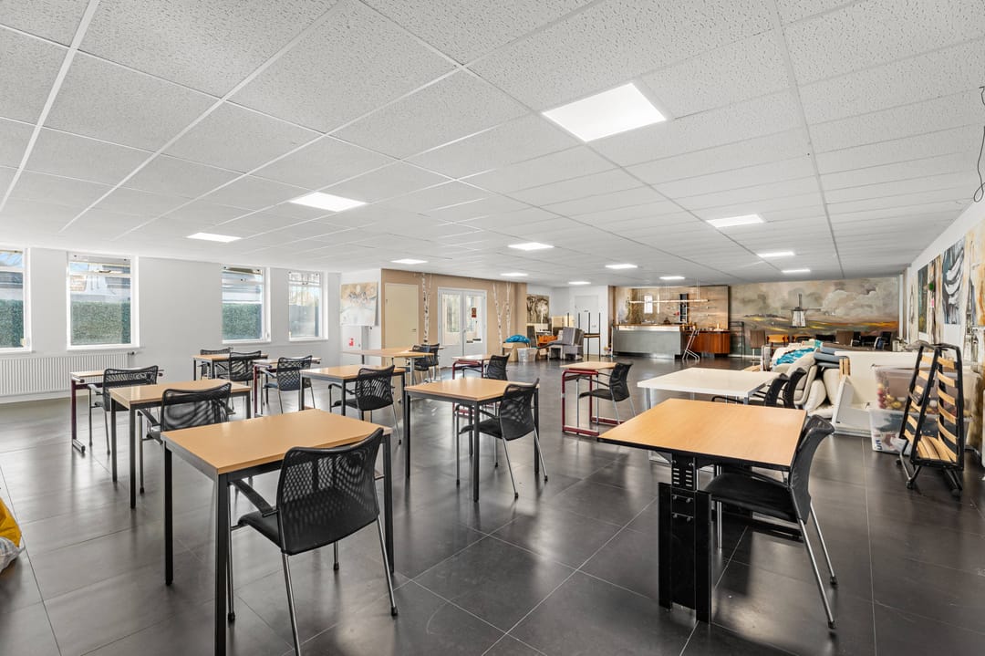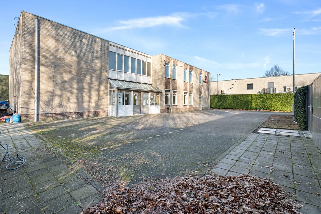 De achtergelegen kantoor-/bedrijfsruimte heeft een oppervlakte van circa 550 m² gelijkwaardig verdeeld over twee bouwlagen. Het geheel heeft een functioneel opleveringsniveau en is onder andere voorzien van een eigen entree, sanitaire voorzieningen, pantry en alarmsysteem.