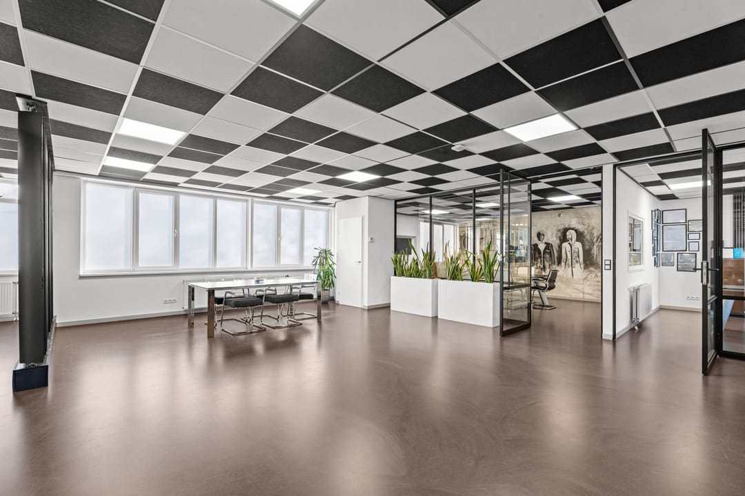- Airconditioning, inbouwarmaturen, te openen ramen, kabelgoten, systeemplafond, toilet, pantry, verwarming en kamerindeling