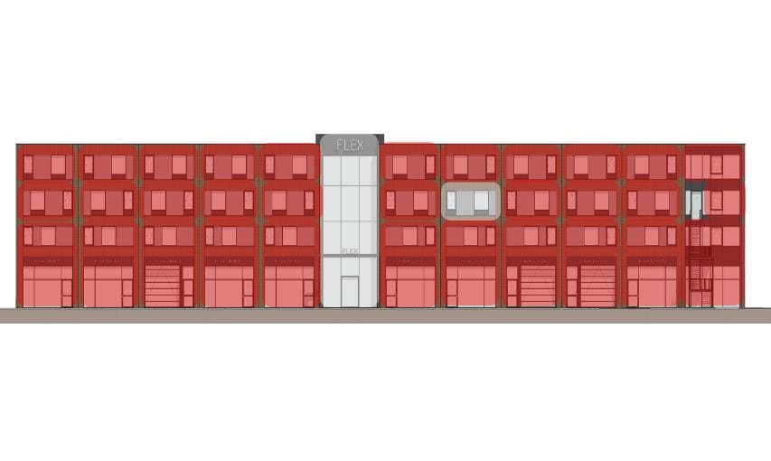 Bij FLEX staat meer dan alleen jouw eigen unit centraal: het project is ontworpen als een dynamische plek waar ondernemers elkaar ontmoeten, inspireren en samenwerken. Daarom is er binnen het gebouw een publieke, gezamenlijke zone die als hart van de community fungeert. Dit is een plek waar je niet alleen aankomt om te werken, maar ook om elkaar te ontmoeten, ideeën uit te wisselen en jouw netwerk uit te breiden. Deze gezamenlijke ruimte is slim geïntegreerd in het ontwerp: