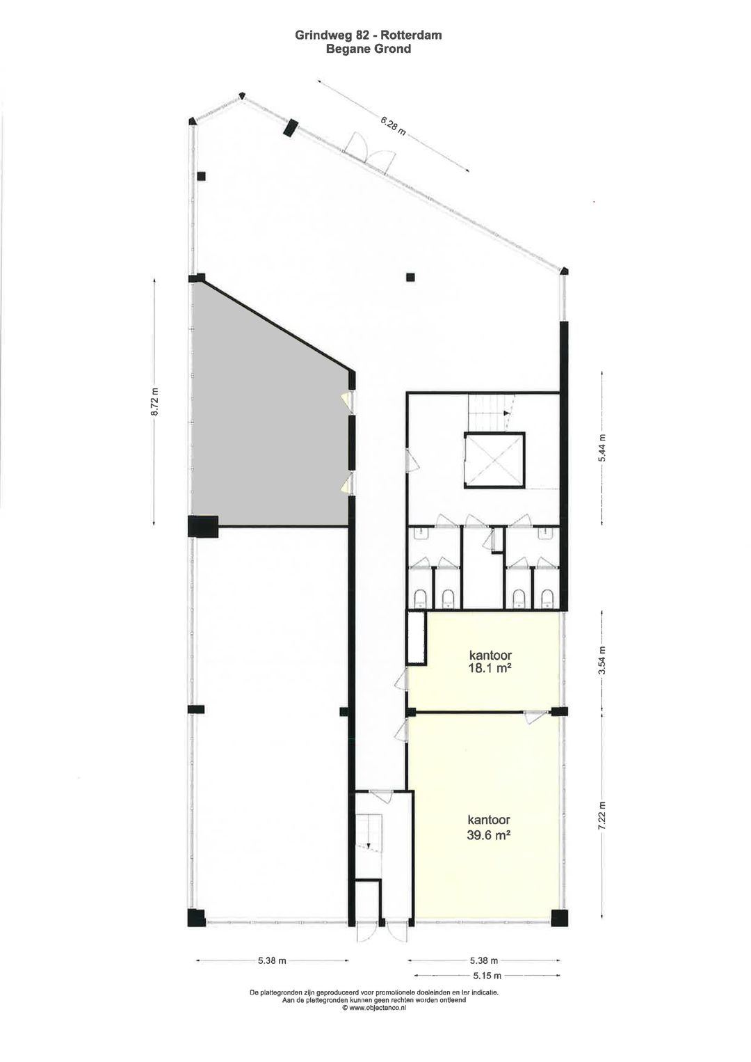 Het object beschikt over 4 bouwlagen, waarvan er 2 kantoorruimtes beschikbaar zijn op begane grond. Deze dienen samen gehuurd te worden.
