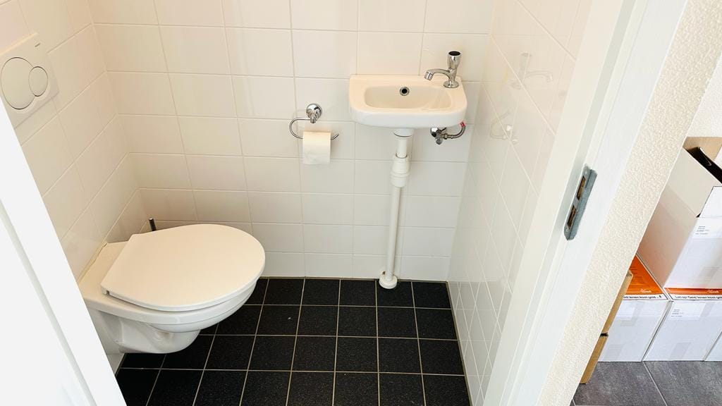 Het geheel is voorzien van betonvloer, volledig gestoffeerd en uitgevoerd met voldoende elektrapunten, airconditioning, luxe toiletruimte en nette keuken.