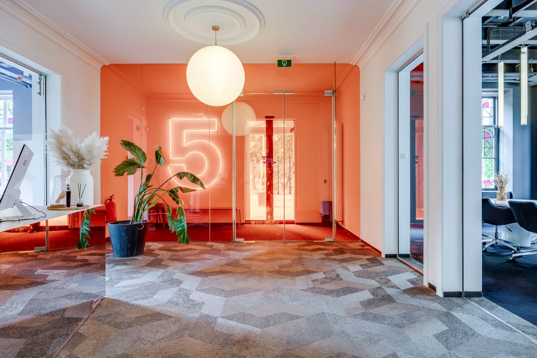 Entree met vestibule voorzien van glazen pui, gang met langwerpige balie, 3 royale vergaderkamers, stilteruimte, creatieve kamerruimte met pantry, brainstormruimte, wachtruimte, garderobe nis, toiletruimte met royaal voorportaal, lift en trap met bordes.