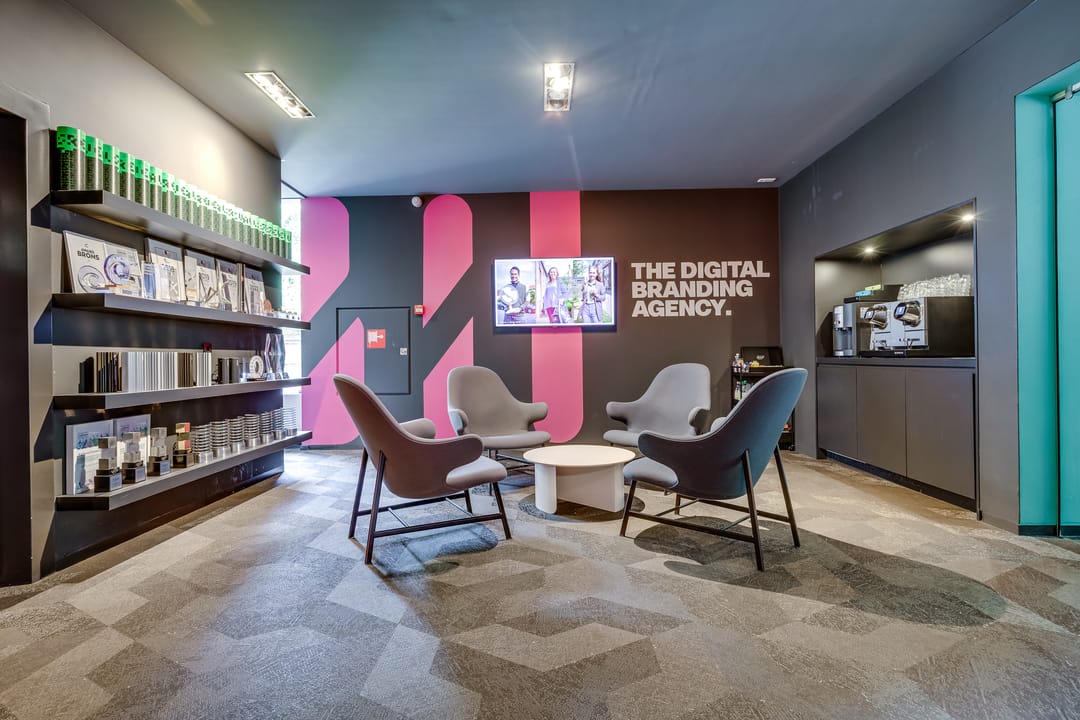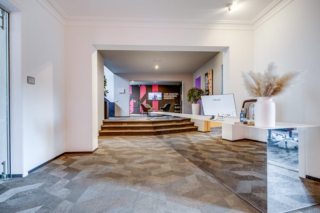 Royale overloop, 2 kantoorkamers waarvan 1 met vergaderfaciliteit, open strategieruimte, redactie- en productieruimte, garderobe nis, toiletruimte met voorportaal, telefooncel, lift en trap met bordes.