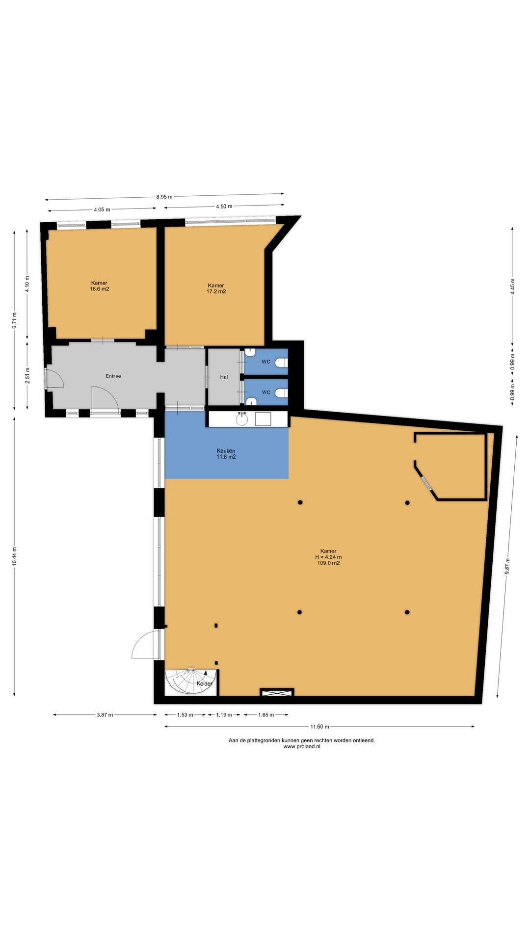 Circa 150 m² verhuurbaar vloeroppervlak op de begane grond, exclusief kelderruimte en vide.