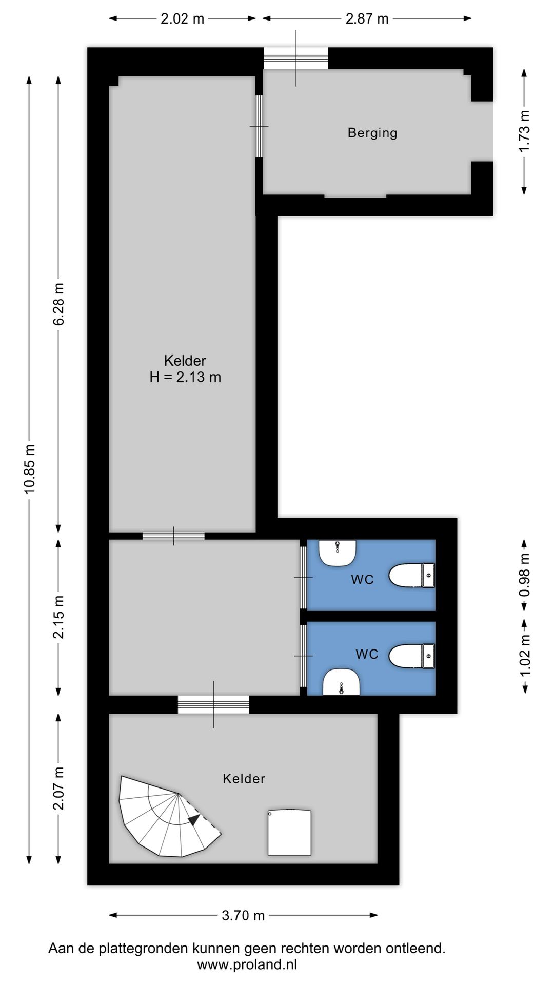 Diverse kelderruimten geschikt voor opslag en archief.