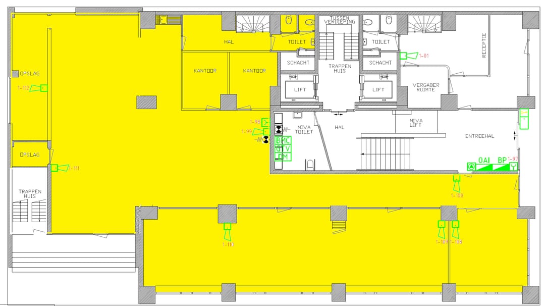 Genoemde metrages zijn vastgesteld aan de hand van de beschikbare informatie en zijn conform NEN 2580. De genoemde metrages zijn inclusief toeslag algemene ruimte (entree begane grond en lifthallen).
