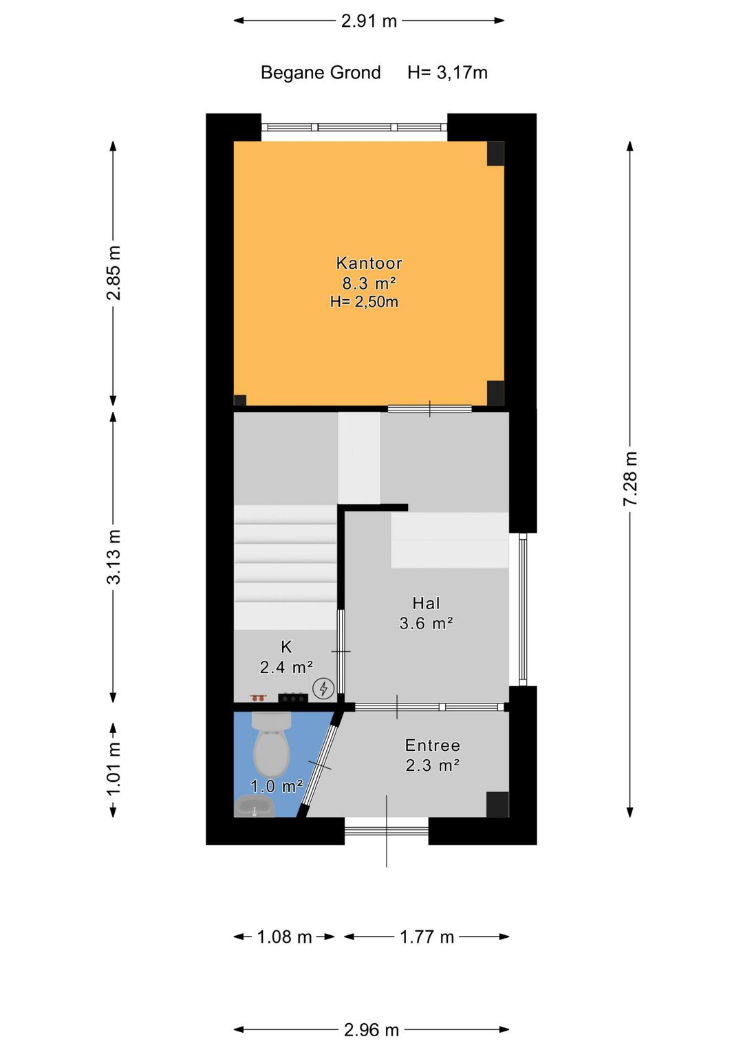 Het object is onderverdeeld in meerdere kamers, heeft een toilet en keuken op de begane grond.