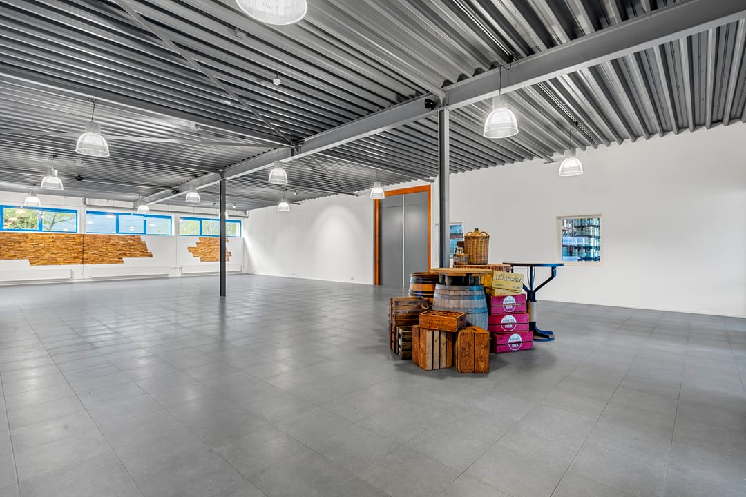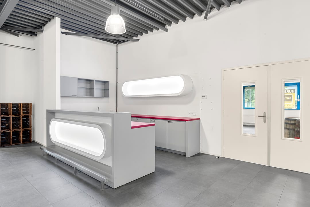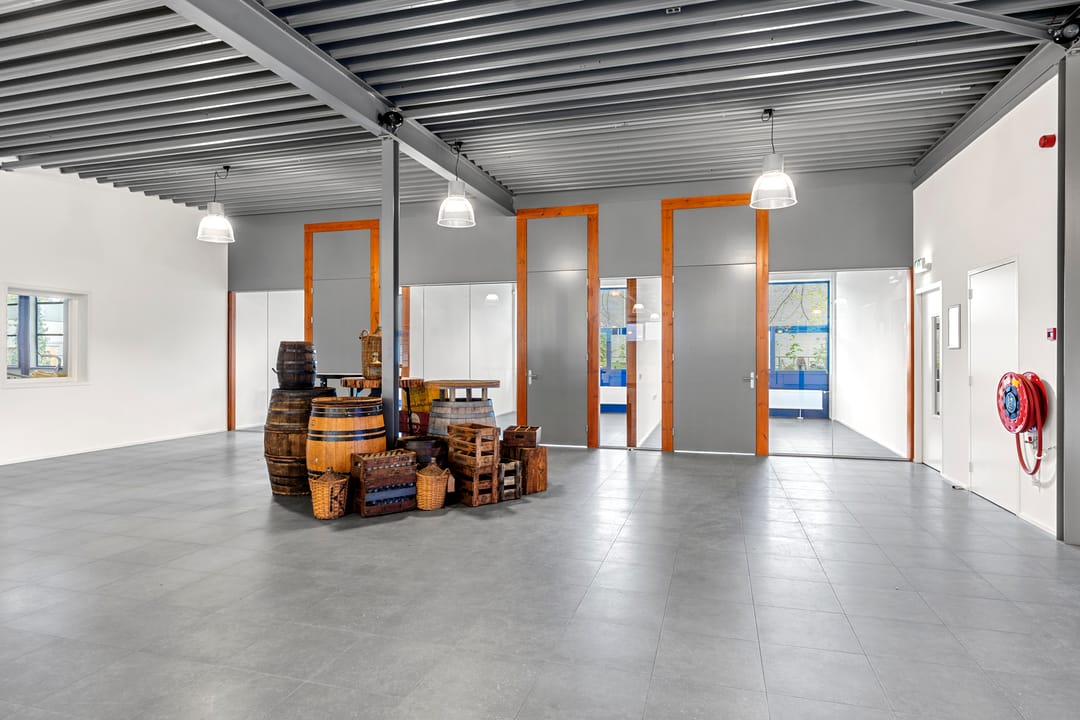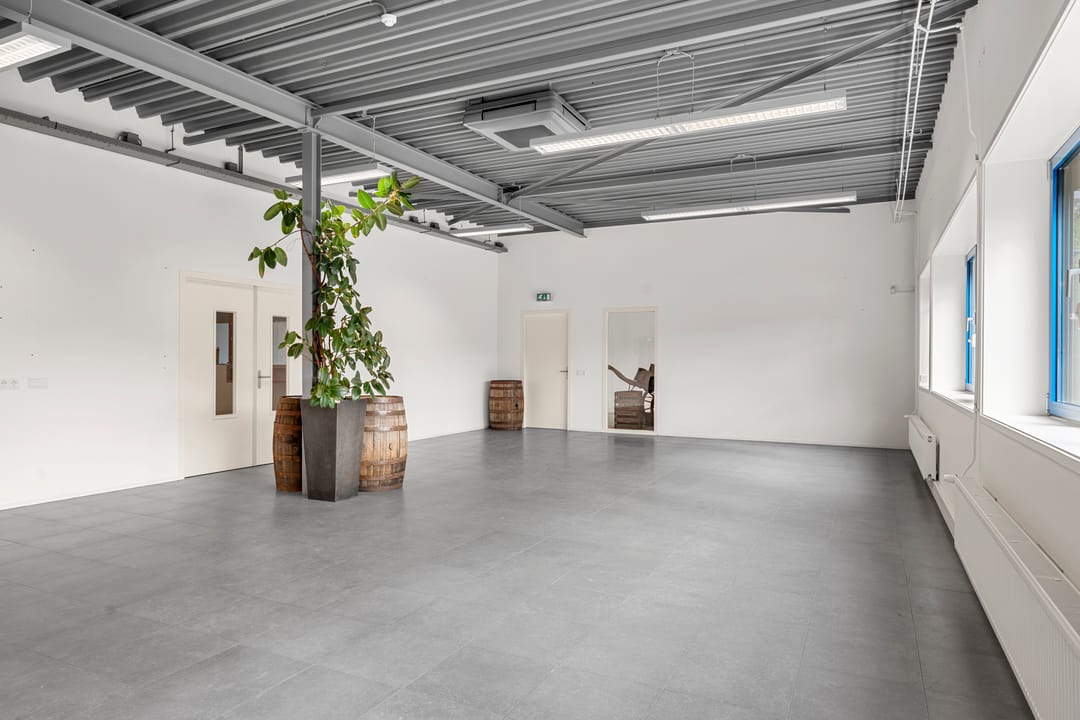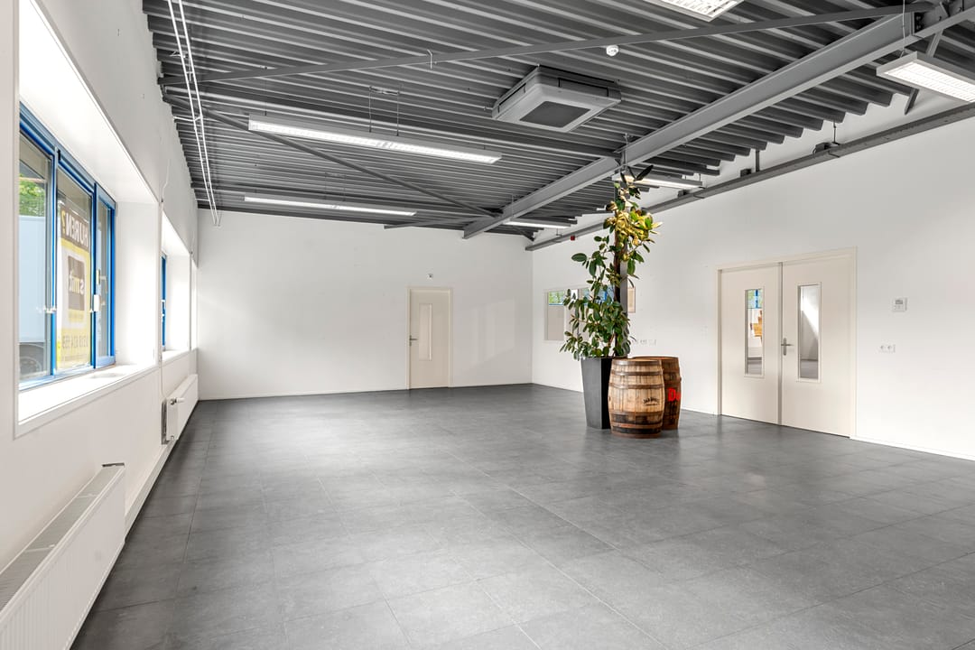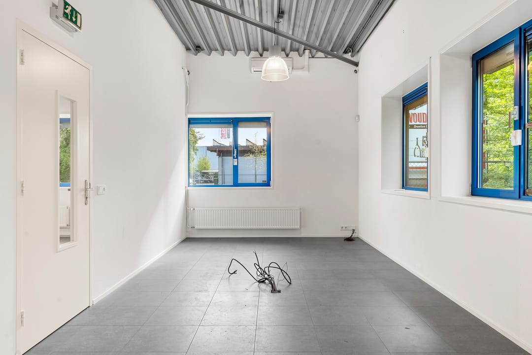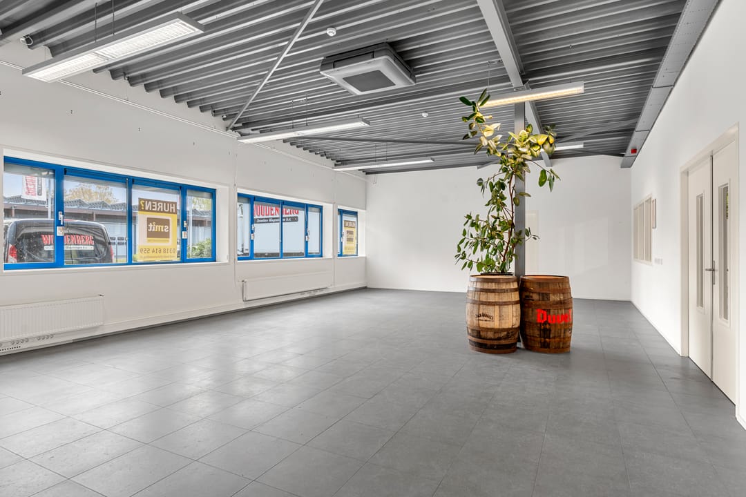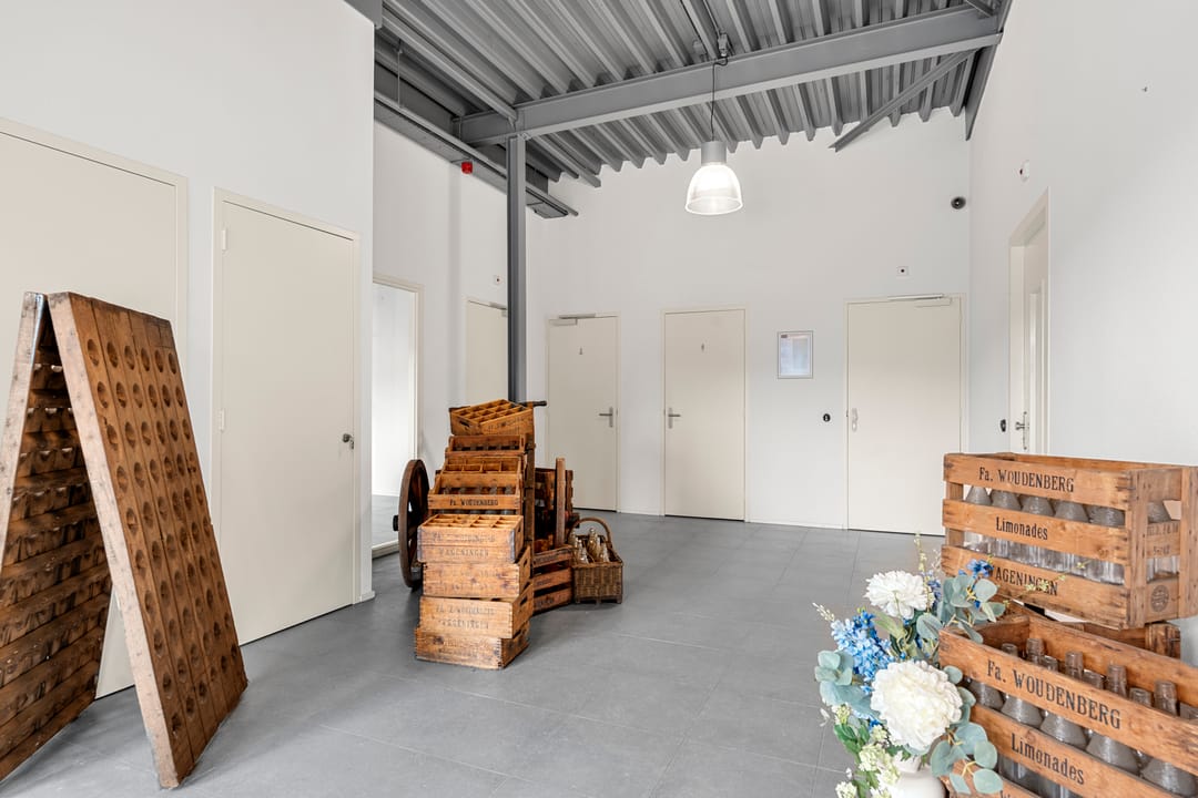 De ruimte maakt onderdeel uit van het bedrijfscomplex van Woudenberg Dranken en wordt aangeboden in onderhuur. Het betreft een moderne, strak afgewerkte ruimte met een industriële uitstraling, gekenmerkt door hoge plafonds, vrije overspanning en veel daglicht. De huidige indeling bestaat uit een royale open showroom gecombineerd met meerdere kantoor-/spreekruimten. Dankzij de efficiënte opzet is de ruimte eenvoudig aan te passen aan de wensen van de gebruiker.