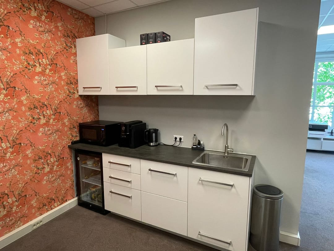 3e ruimte (opp. ca. 15 m2), thans in gebruik als keuken v.v. moderne lichte keukenopstelling v.v. koelkast met vriesvak en een vaatwasser.
