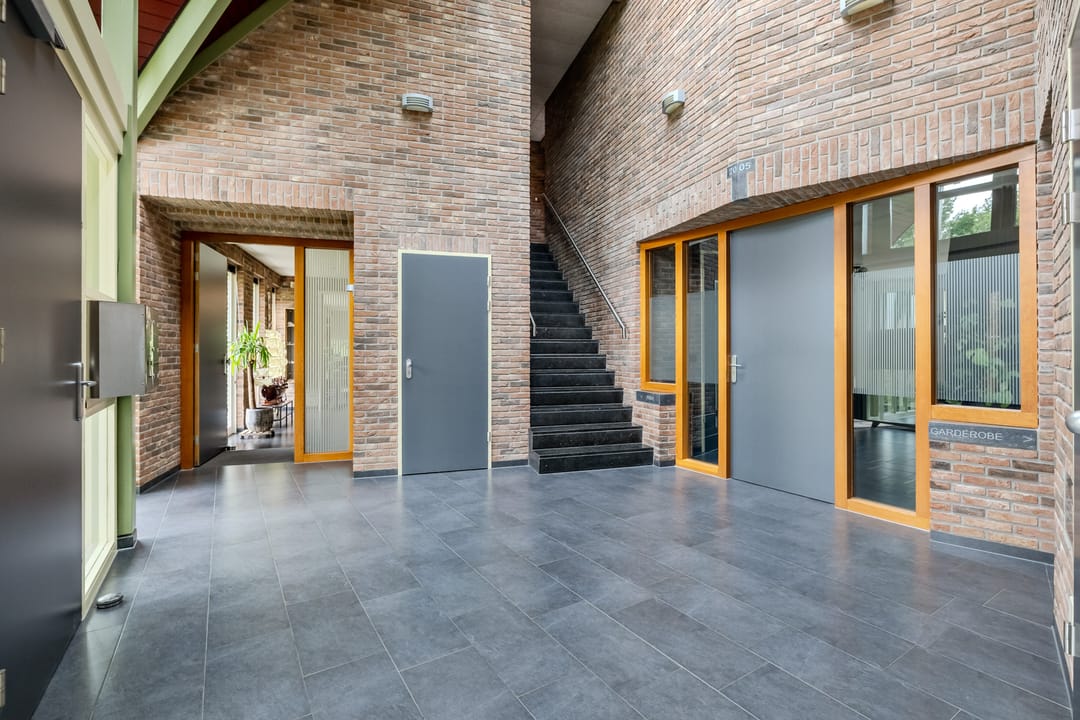 Via het voorportaal betreedt u de royale centrale entree die toegang biedt tot vier afzonderlijke woon- en/of kantooreenheden. De indeling biedt veel privacy én mogelijkheden voor gezamenlijke functies. In de centrale hal bevindt zich een garderobe, toiletruimte.