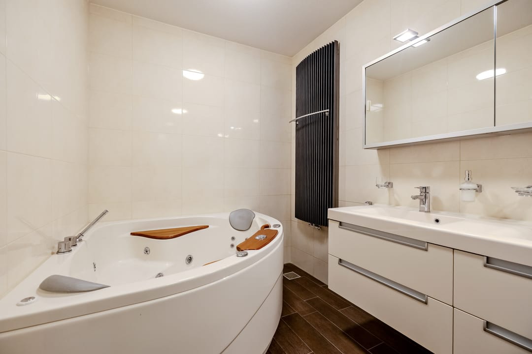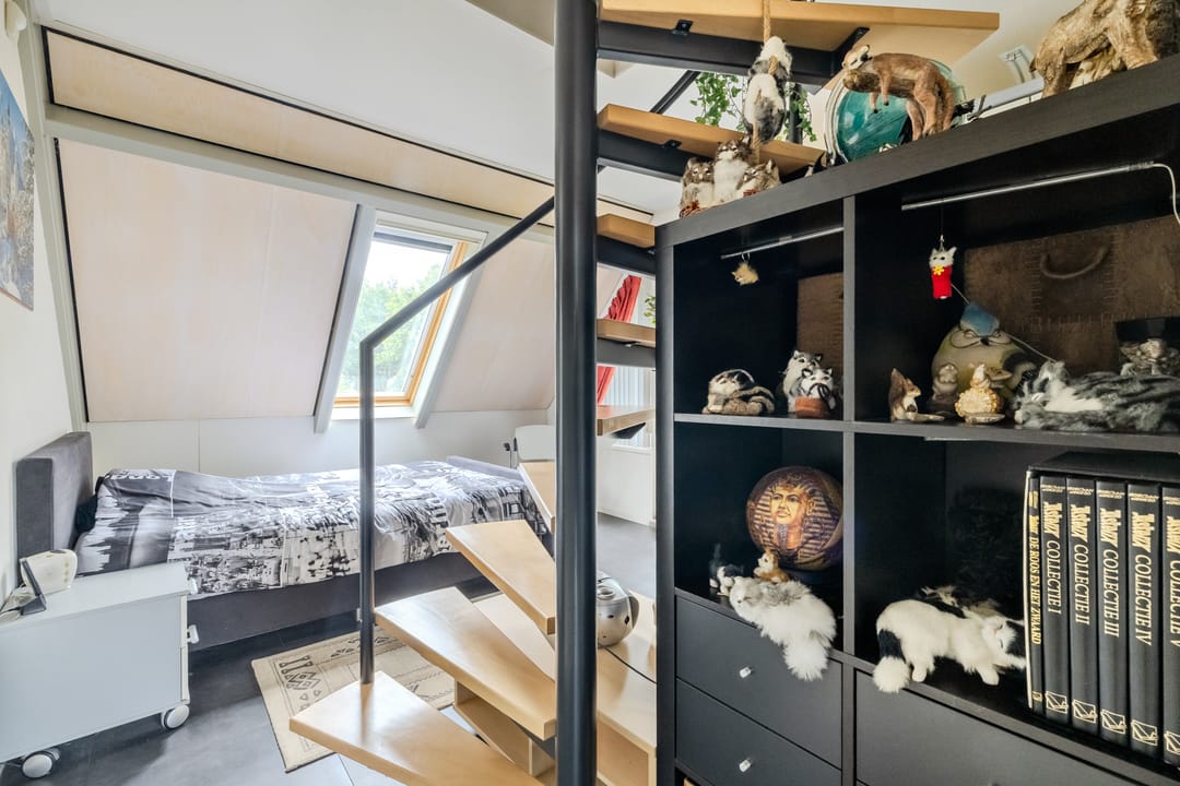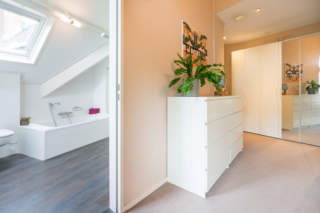 - Overloop, badkamer, 4 slaapkamers (waarvan 1 met balkon en directe toegang tot badkamer), wasruimte en een ruime extra kamer