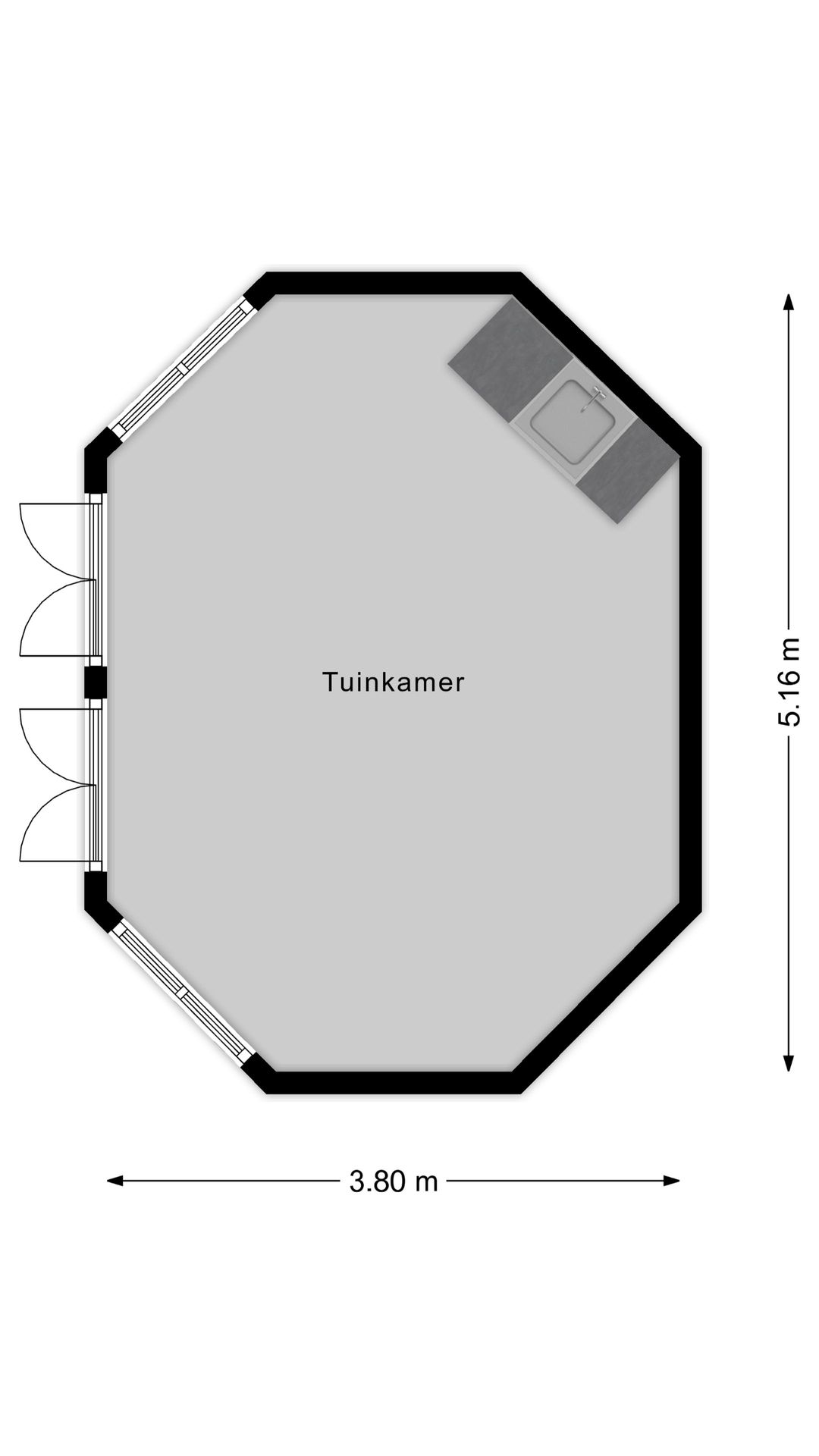 Begane grond: kantoor/studioruimte, pantry, archiefruimte, terras