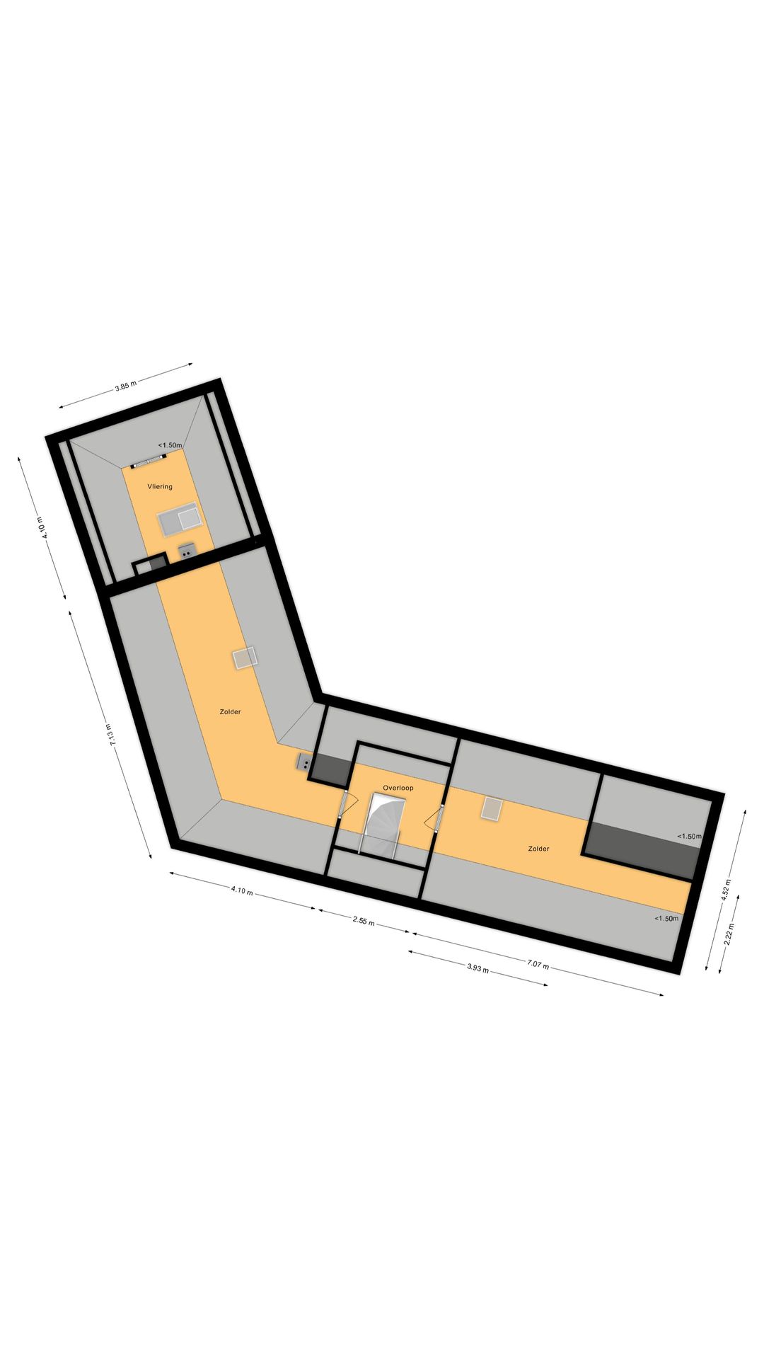 Eerste verdieping: Overloop, badkamer en 2 slaapkamers.