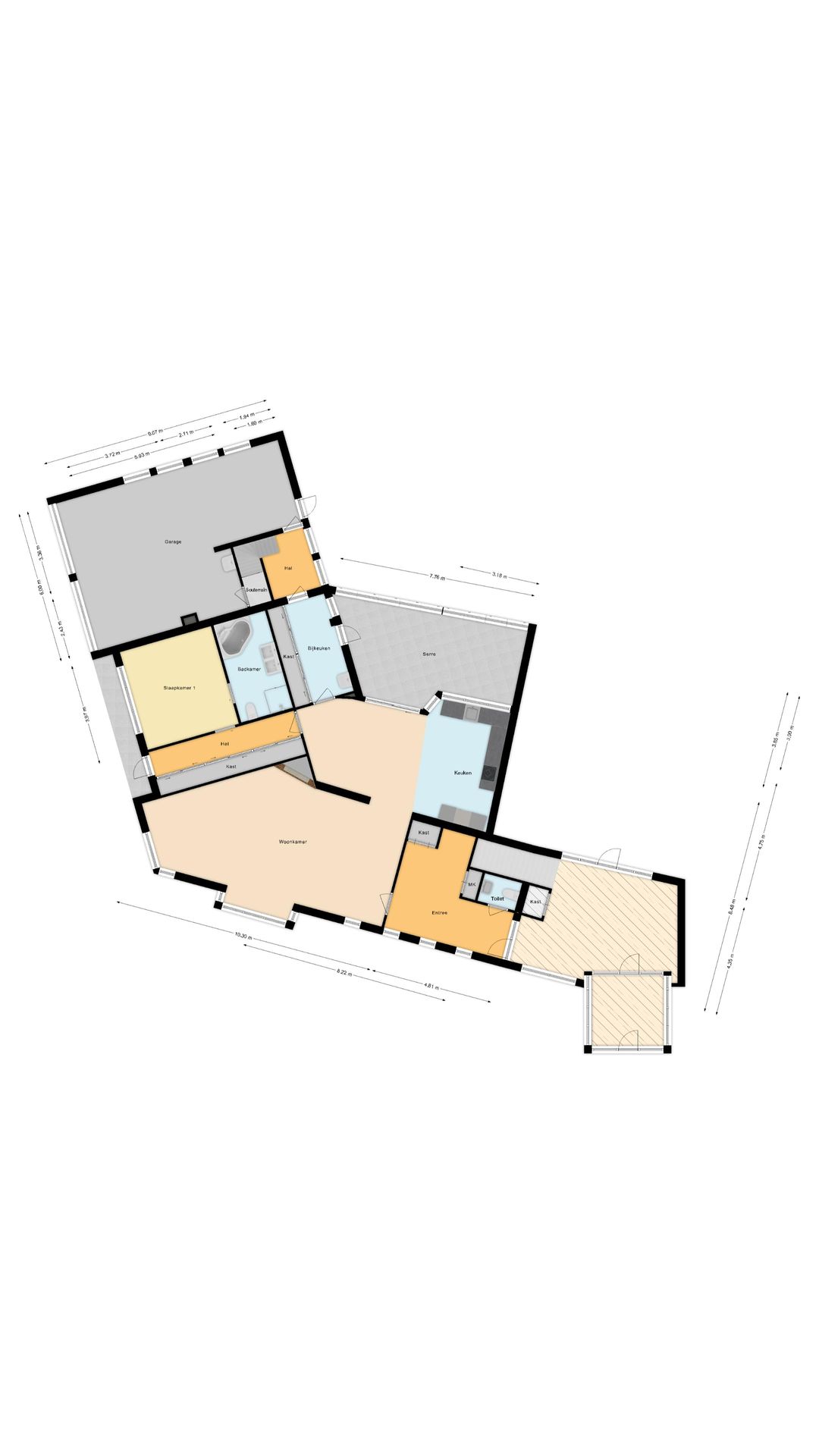 - Hal met toilet, woonkamer, keuken, bijkeuken en ruime garage.