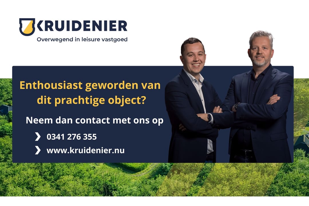 Deze informatie is geheel vrijblijvend, uitsluitend bestemd voor geadresseerde en niet bedoeld als een aanbod. Ten aanzien van de juistheid kan door Kruidenier Recreatie Bedrijfsmakelaardij B.V. geen aansprakelijkheid worden aanvaard, noch kan aan de vermelde informatie enig recht worden ontleend. Alle opgegeven aantallen, maten en oppervlakten zijn indicatief.