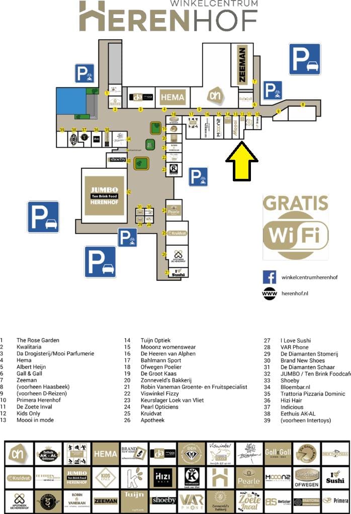 Parkeren is mogelijk op de twee grote parkeerterreinen van winkelcentrum “De Herenhof”.