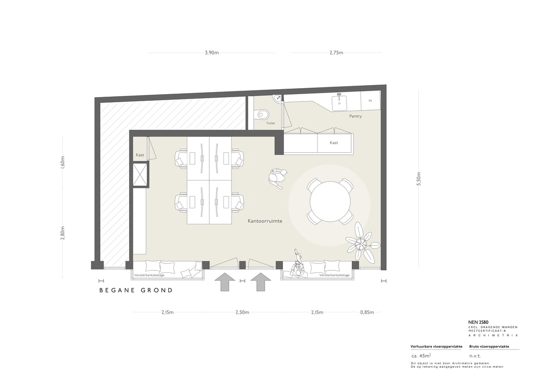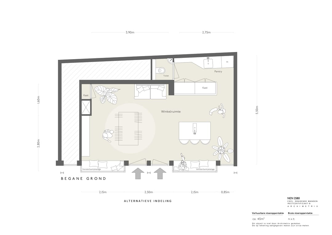 De ruimte beschikt over een open en efficiënte indeling, waardoor deze flexibel in te richten is voor verschillende gebruiksdoeleinden. Dankzij de ligging op de begane grond en de raampartijen aan de voorzijde profiteert het object van veel daglicht en een goede zichtbaarheid vanaf de straat.
