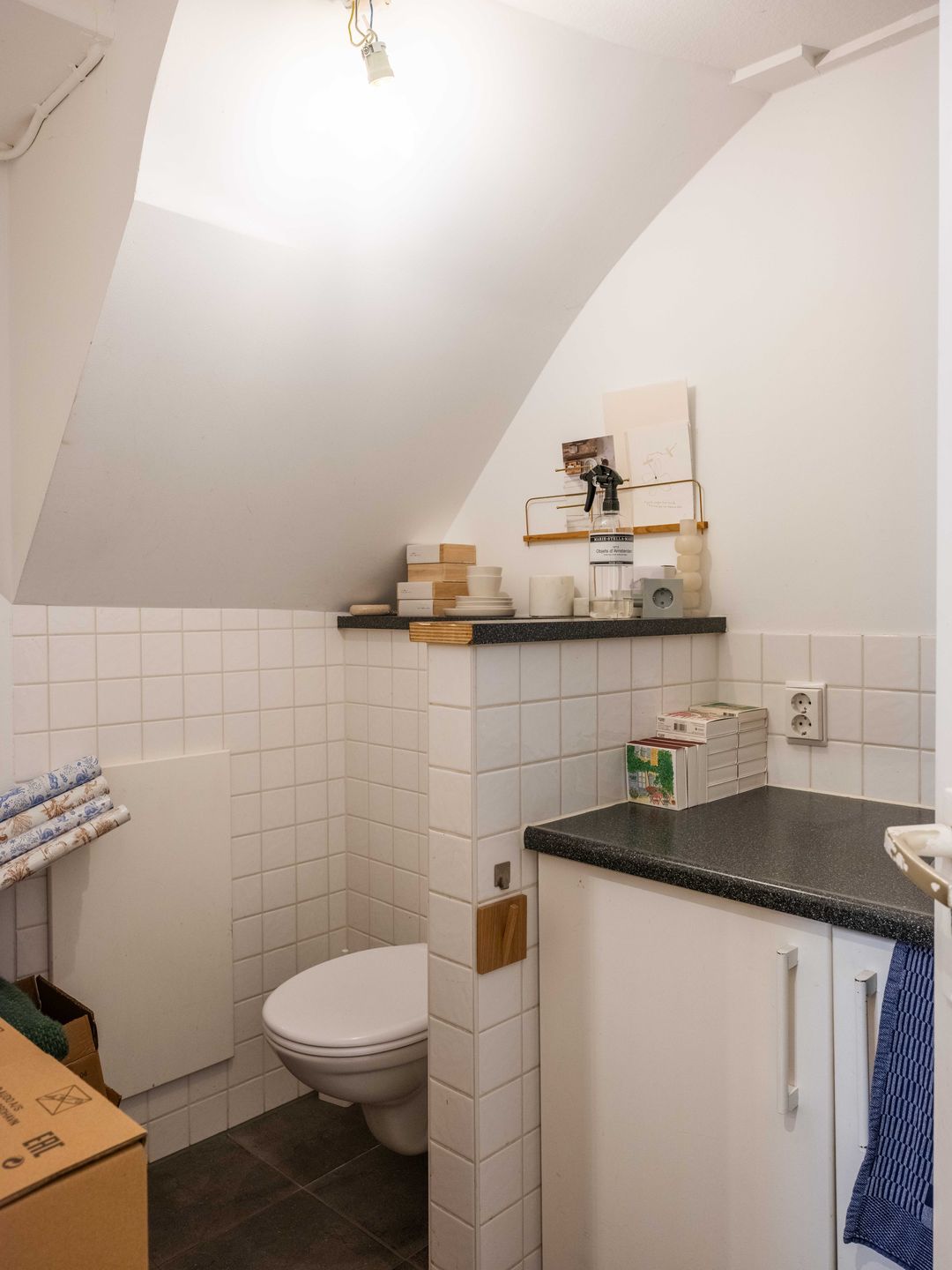 De woning beschikt over twee slaapkamers, die eventueel met elkaar verbonden kunnen worden via een schuifdeur. De badkamer is compact en voorzien van een douche, toilet en badkamermeubel. Daarnaast beschikt de woning over een zonnig dakterras – een unieke plek om in alle rust van de buitenlucht te genieten.
