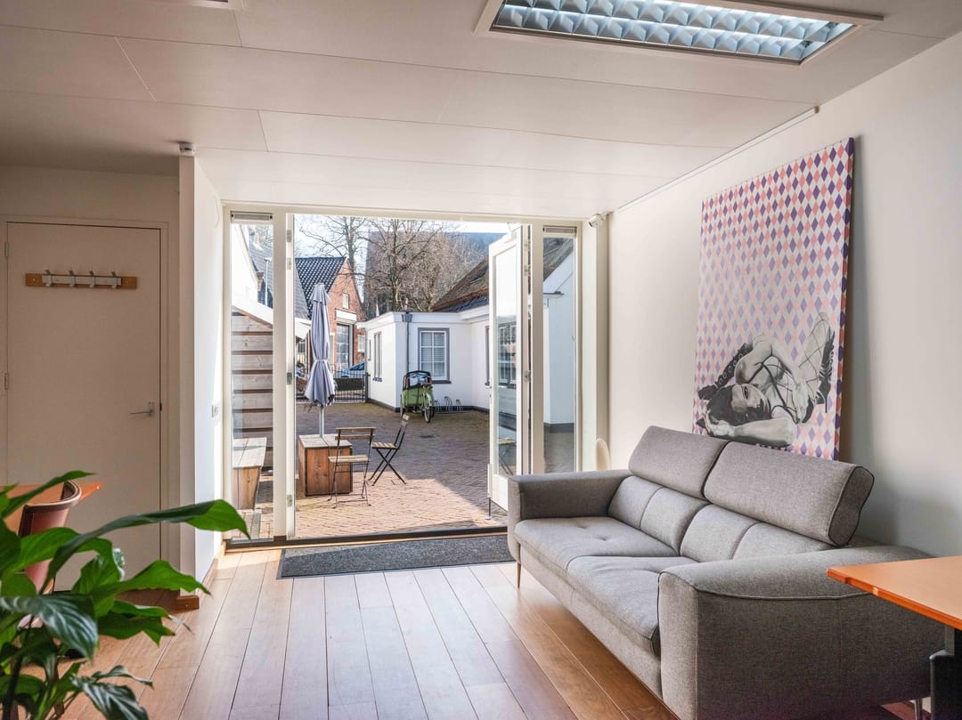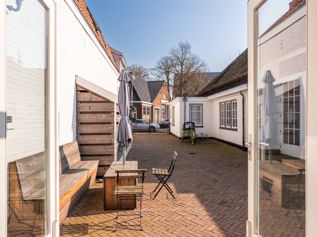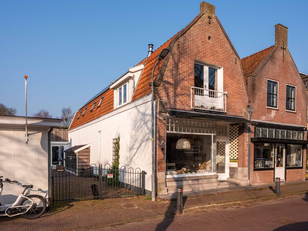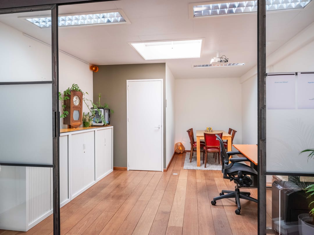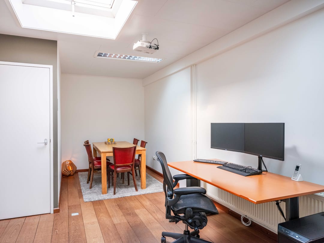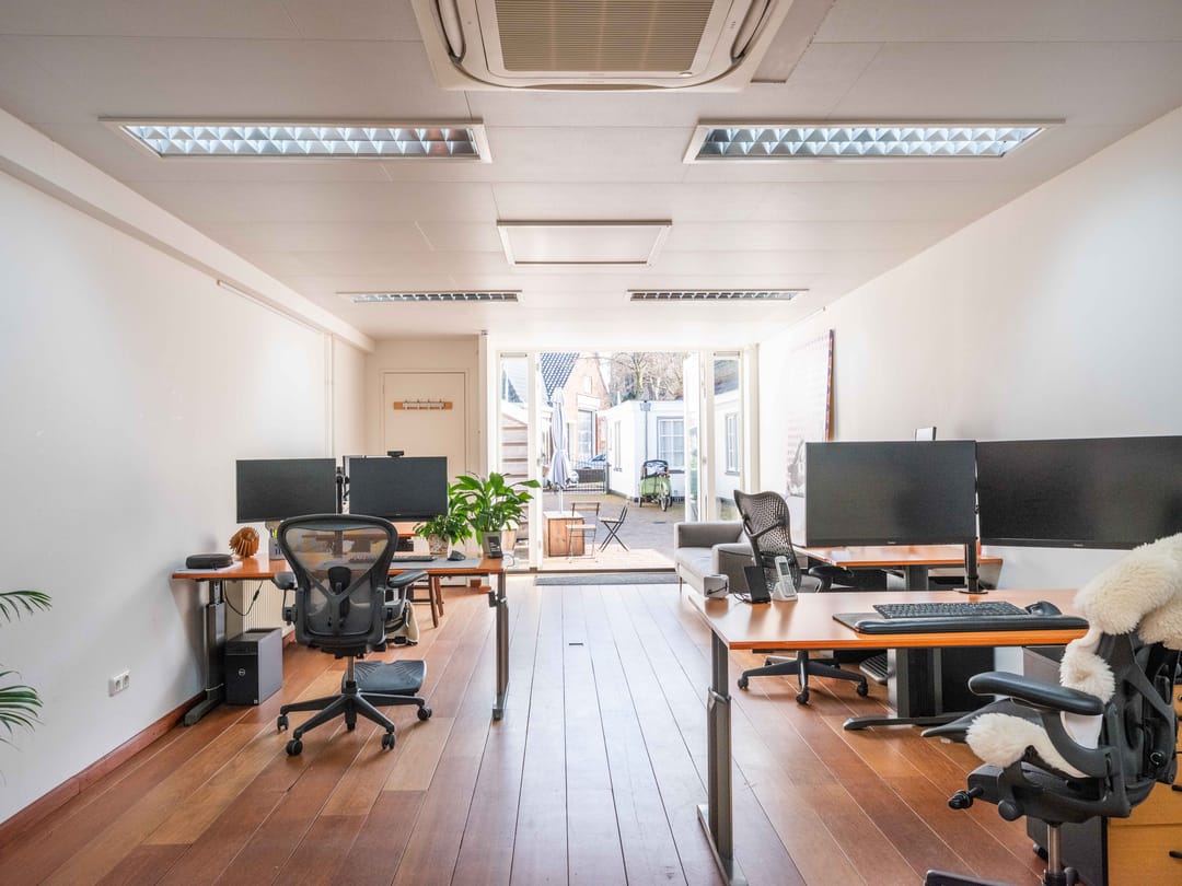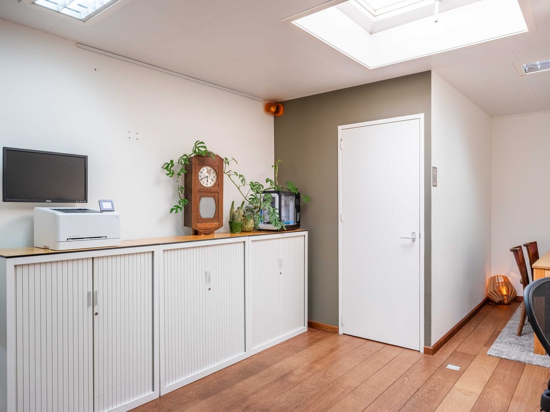 Achter de winkel bevindt zich een aparte kantoorruimte, ideaal voor bijvoorbeeld een praktijk aan huis, werkruimte of uitbreiding van de winkel of woning. Deze ruimte van circa 43 m² is in 2023 voorzien van een nieuwe pui met openslaande deuren.