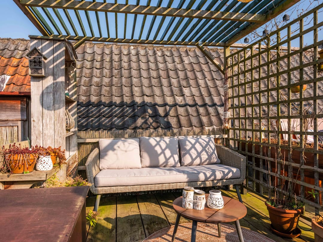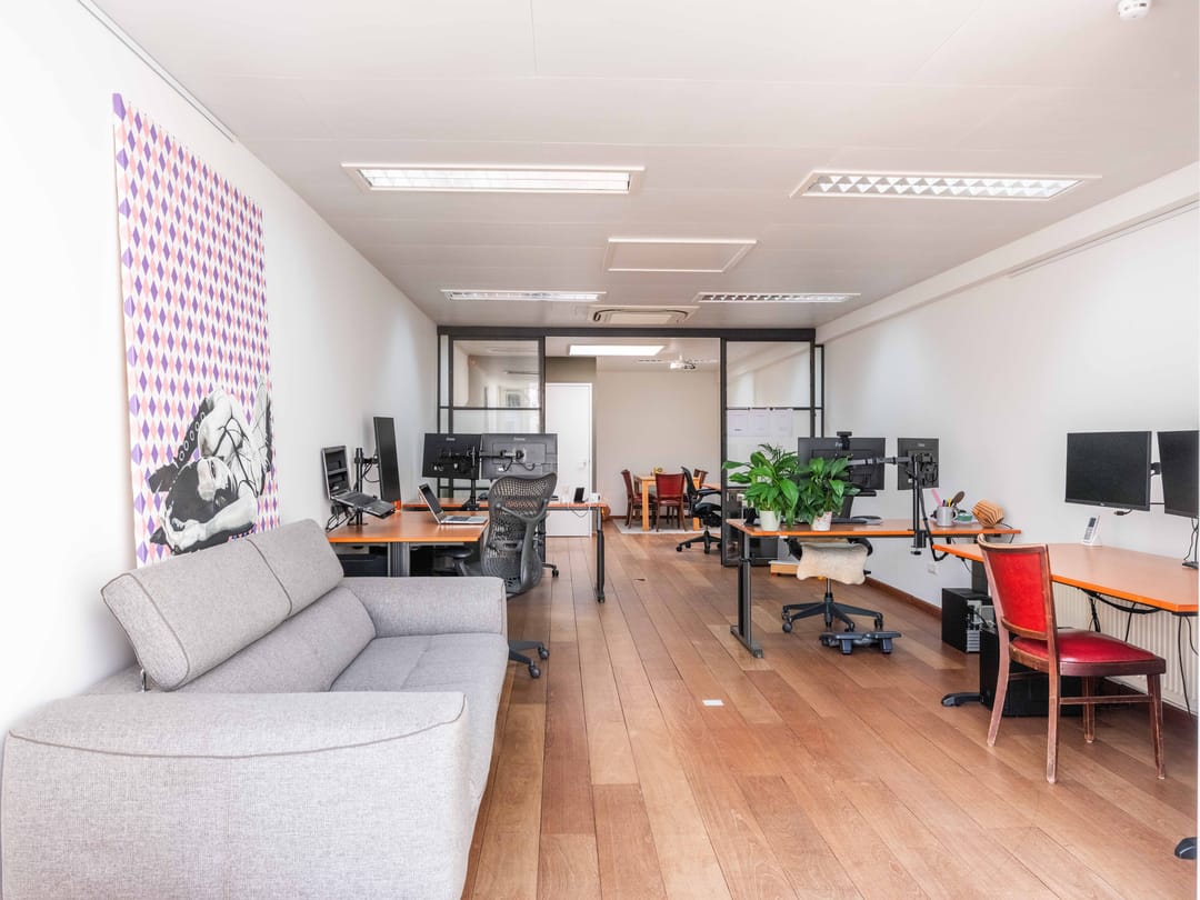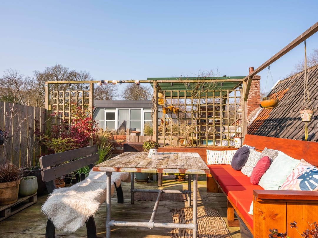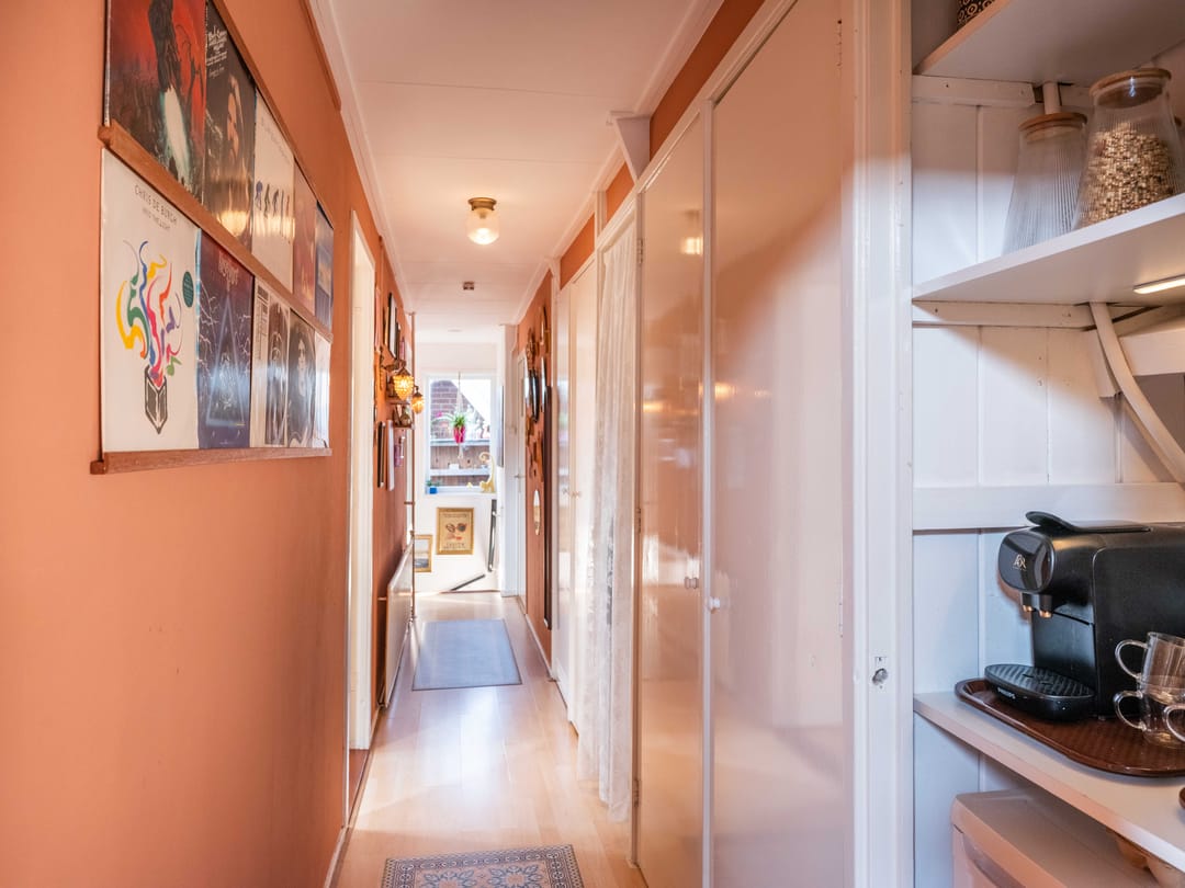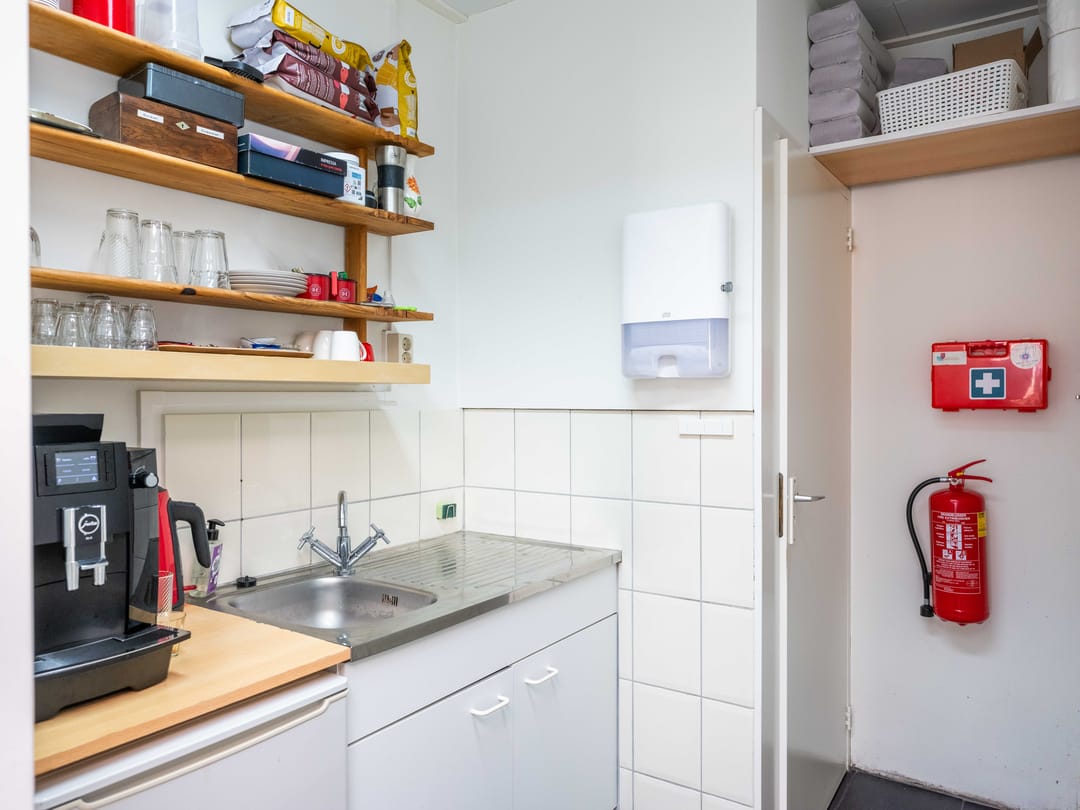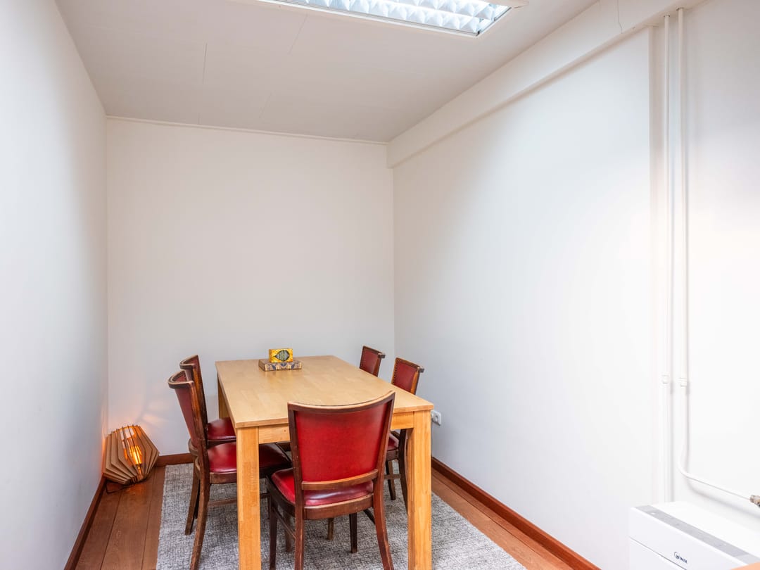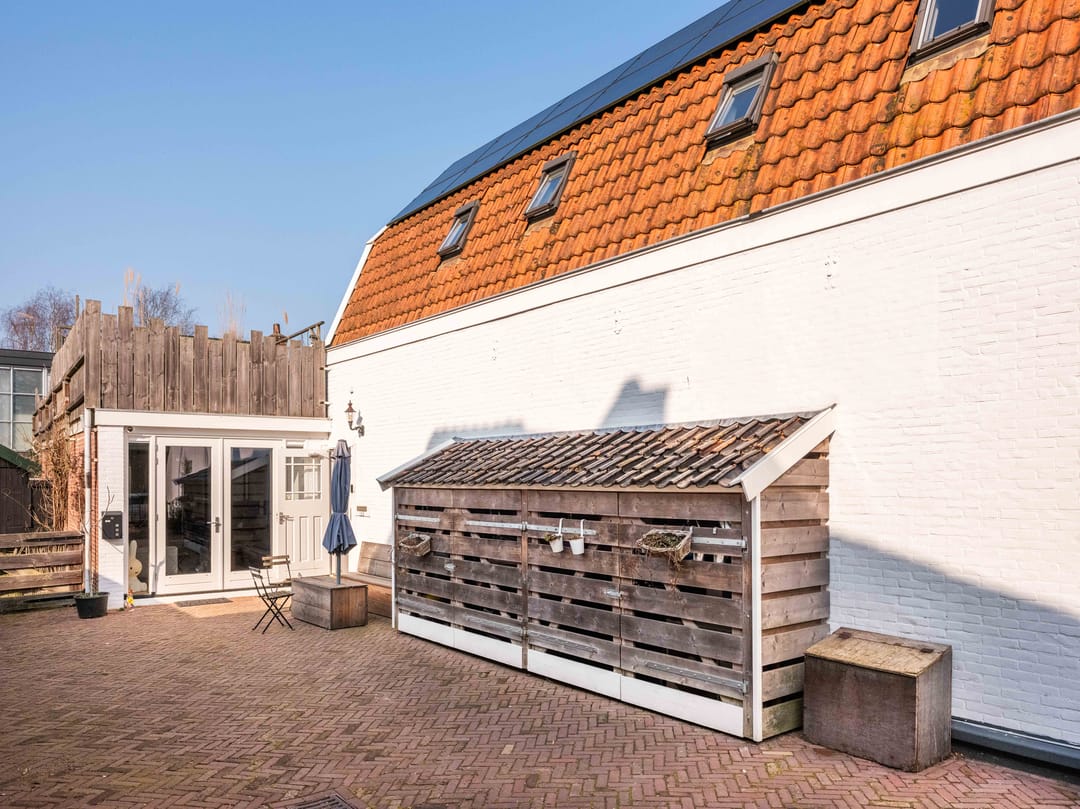 Achter de winkel bevindt zich een aparte kantoorruimte, ideaal voor bijvoorbeeld een praktijk aan huis, werkruimte of uitbreiding van de winkel of woning. Deze ruimte van circa 43 m² is in 2023 voorzien van een nieuwe pui met openslaande deuren.