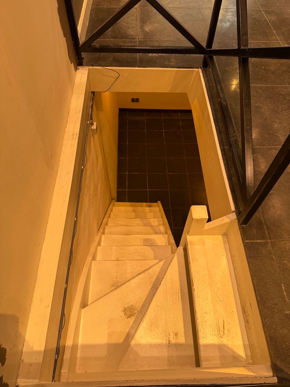 - houten trap naar kelder;