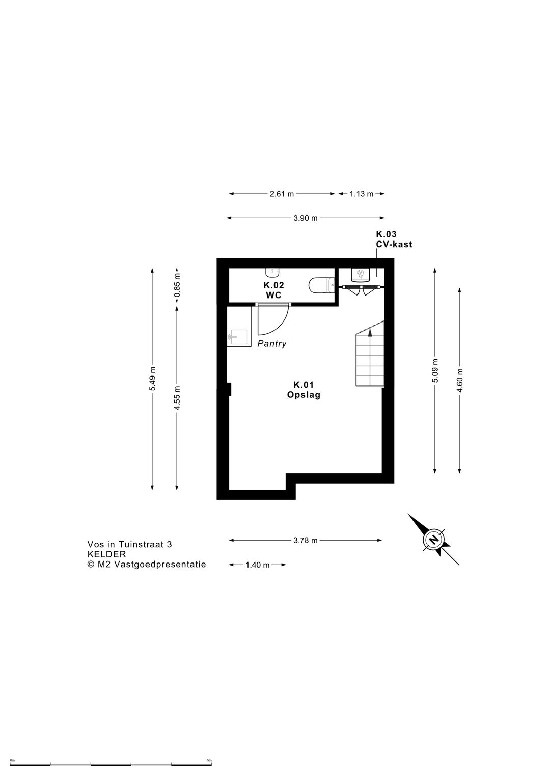 kelder 25,45 m² opslag, pantry en toilet.